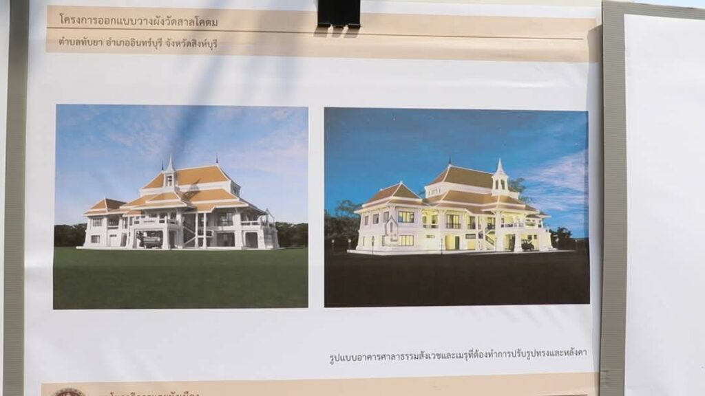 ในการออกแบบปรับภูมิทัสน์วัดสาลโคดม อำเภออินทร์บุรี จังหวัดสิงห์บุรี พลเอกประยุทธ์ จันทร์โอชา ประธานการเงินและปรับภูมิทัศน์วัดสาลโคดม ได้ทำหนังสือขอความร่วมมือกรมโยธาธิการและผังเมืองเป็นผู้ออกแบบให้ ซึ่งในเบื้องต้นตามแบบจะต้องมีการทุบอาคารและสิ่งปลูกสร้างบางส่วนออกเพื่อความสวยงาม และออกแบบก่อสร้างอาคารใหม่ โดยอาคารหลักหลังใหญ่ออกแบบโดยสถาบันพระจอมเกล้า ใช้งบประมาณก่อสร้างโดยประมาณ 55 ล้านบาท ส่วนอาคารรอบๆ บริเวณกรมโยธาธิการและผังเมือง จะออกแบบก่อสร้างให้สอดคล้องกับอาคารหลักที่สถาบันพระจอมเกล้าออกแบบ ซึ่งในการปรับภูมิทัศน์วัดสาลโคดมคาดว่าจะใช้เวลาดำเนินการประมาณ 3 – 5 ปีถึงจะเสร็จสมบูรณ์ และคาดว่าจะใช้งบประมาณในการดำเนินการทั้งหมดประมาณ 100 ล้านบาท