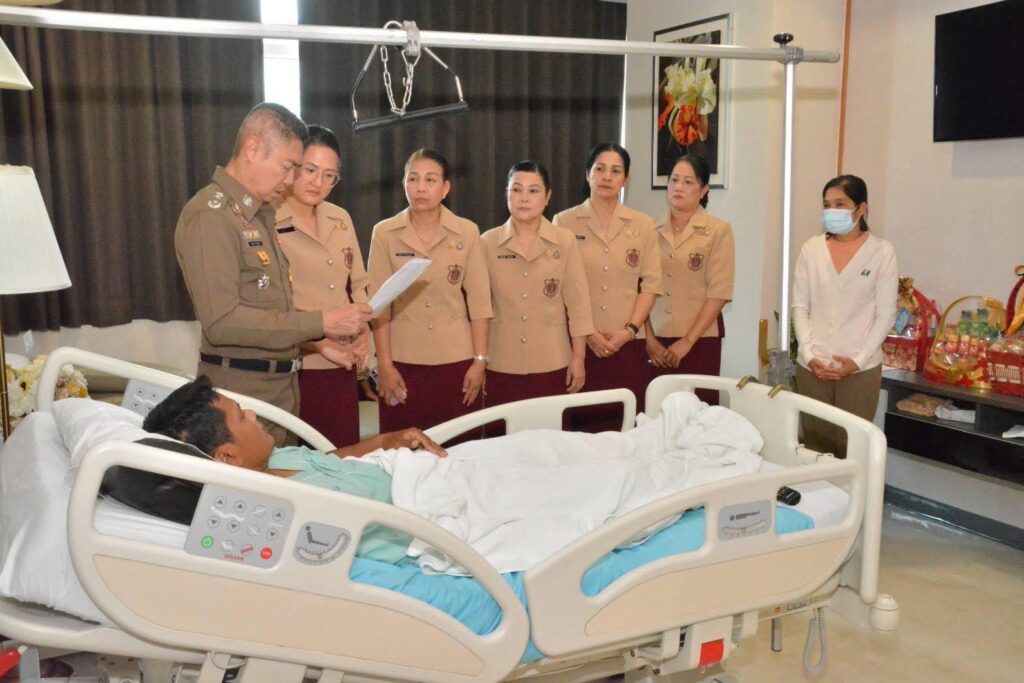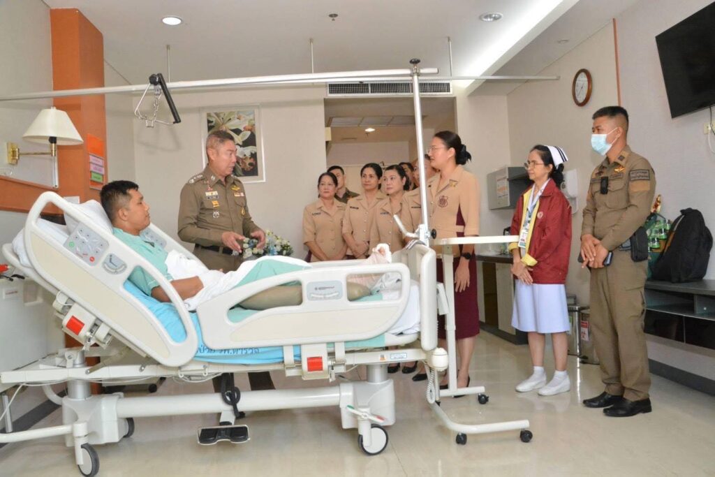 ทั้งนี้ การเยี่ยมข้าราชการตำรวจที่ได้รับบาดเจ็บจากการปฏิบัติหน้าที่ เป็นหนึ่งในนโยบายที่ พล.ต.อ.กิตติ์รัฐ พันธุ์เพ็ชร์ ผู้บัญชาการตำรวจแห่งชาติ มอบหมายให้ผู้บังคับบัญชาทุกระดับดูแลผู้ใต้บังคับบัญชาอย่างใกล้ชิด เพื่อสร้างขวัญกำลังใจในการปฏิบัติหน้าที่ และทางด้านสมาคมแม่บ้านตำรวจ คุณกนกวรรณ พันธุ์เพ็ชร์ นายกสมาคมแม่บ้านตำรวจ ได้มีนโยบายในการสนับสนุนภารกิจของสำนักงานตำรวจแห่งชาติ พัฒนาและส่งเสริมคุณภาพชีวิตของครอบครัวตำรวจ โดยได้จัดทำโครงการหลายโครงการที่มุ่งเน้นช่วยเหลือข้าราชการตำรวจและครอบครัว เช่น โครงการ “ครอบครัวตำรวจ เราไม่ทิ้งกัน” ที่จะดูแลช่วยเหลือ บำรุงขวัญกำลังใจข้าราชการตำรวจที่ได้รับบาดเจ็บ หรือทุพพลภาพ จากการปฏิบัติหน้าที่ โดยมอบหมายให้ผู้แทนสมาคมแม่บ้านตำรวจลงพื้นที่เยี่ยมบำรุงขวัญอย่างต่อเนื่อง เพื่อให้กำลังใจและแสดงความขอบคุณที่ข้าราชการตำรวจได้ปฏิบัติหน้าที่อย่างเต็มกำลัง ในการบำบัดทุกข์บำรุงสุขให้พี่น้องประชาชน