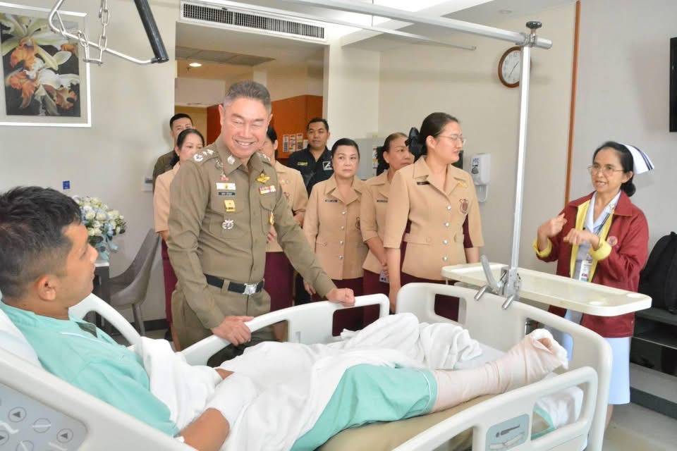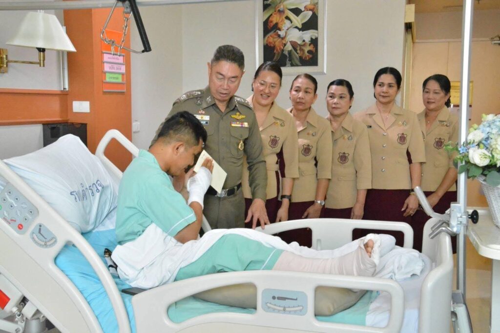 1.ด.ต.ทวีศักดิ์ ศรีเมือง ผบ.หมู่ สภ.ประตูน้ำจุฬาลงกรณ์ ภ.จ.ปทุมธานี เมื่อวันที่ 25 กุมภาพันธ์ 2568 ขณะปฏิบัติหน้าที่ตั้งจุดสกัดชั่วคราวบริเวณถนนกลางซอยรังสิต-นครนายก 30 จ.ปทุมธานี ได้มีผู้ขับขี่รถจักรยานยนต์เข้ามายังจุดสกัดด้วยความเร็ว และพุ่งชน ด.ต.ทวีศักดิ์ ศรีเมือง บริเวณจุดสกัดดังกล่าว ทำให้ได้รับบาดเจ็บที่ขาขวา (กระดูกเข่าขวาแตก) และมีแผลที่ฝ่ามือขวา จึงได้ส่งตัวเข้ารับการรักษาที่โรงพยาบาลตำรวจ ล่าสุดอาการโดยทั่วไปดีขึ้น อยู่ระหว่างรอผ่าตัดกระดูกเข่าขวา