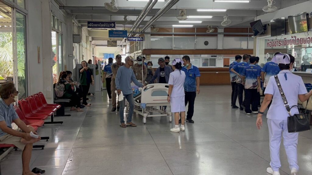 รพ.กันอย่างอลหม่านไปทั่ว รพ.มีทั้งผู้ป่วยเกิดอาการเป็นลมต้องเร่งช่วยปฐมพยาบาลกันอลหม่าน ก่อนที่จะให้ผู้ป่วยและญาติผู้ป่วยมารวมกันที่หน้าตึก รพ.พระนารายณ์มหาราช