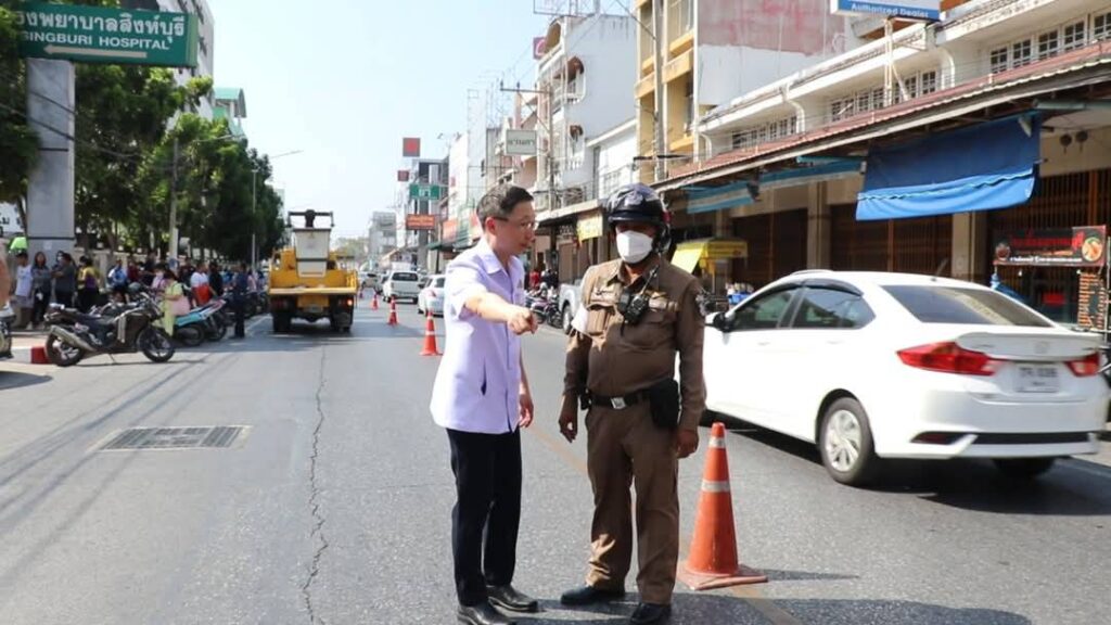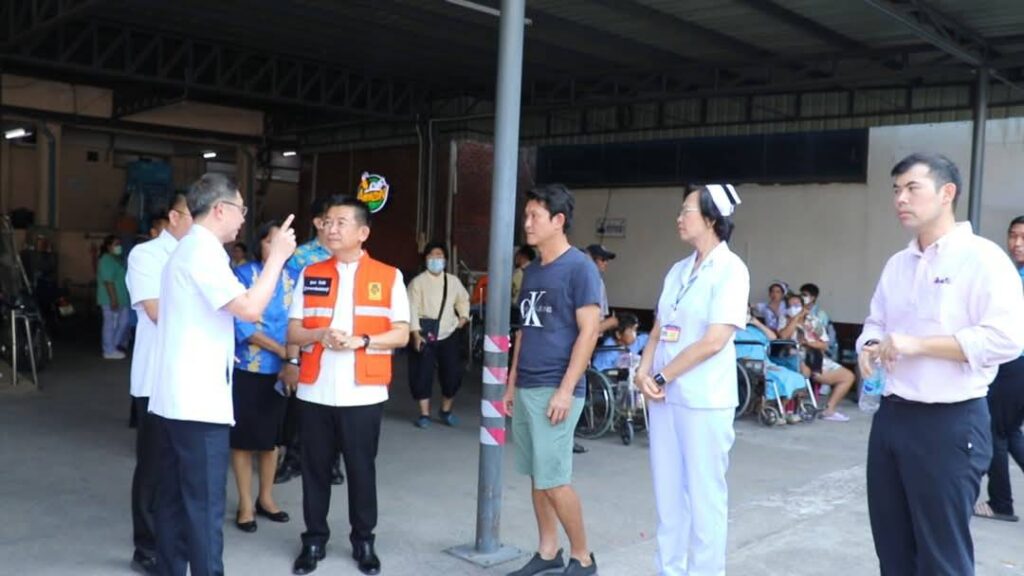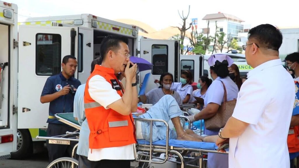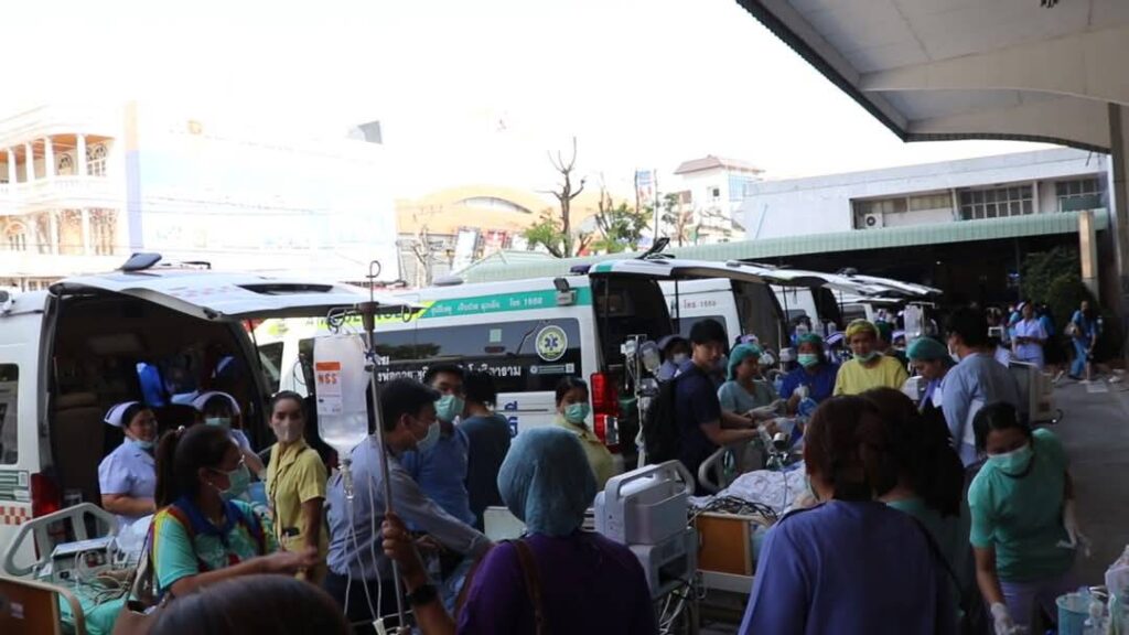 นายสุเมธ ธีรนิติ ผู้ว่าราชการจังหวัดสิงห์บุรี ลงพื้นที่ตรวจสถานการณ์แผ่นดินไหวบริเวณโรงพยาบาลสิงห์บุรี โดยมีนางสาววีรวรรณ จันทนเสวี รองผู้ว่าราชการจังหวัดสิงห์บุรี นางวาสนา ธีรนิติ นายกเหล่ากาชาดจังหวัดสิงห์บุรี นายแพทย์สาธารณสุขจังหวัดสิงห์บุรี นายก อบจ.สิงห์บุรี ทีมแพทย์จากสำนักงานสุขจังหวัดสิงห์บุรี ผู้อำนวยการโรงพยาบาลสิงห์บุรี ตลอดจนพยาบาล ร่วมกตัญญูและเจ้าหน้าที่ทุกคน ร่วมปฏิบัติการในการเคลื่อนย้ายผู้ป่วยออกมาจากอาคารของโรงพยาบาลเพื่อความปลอดภัยของผู้ป่วย