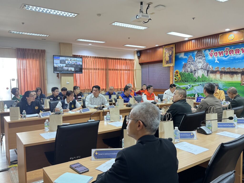 ซึ่งในส่วนของจังหวัดลพบุรี นายอำพล อังคภากรณ์กุล ผู้ว่าราชการจังหวัดลพบุรี กล่าวในที่ประชุมว่า ขอให้หน่วยงานทุกภาคส่วนและอำเภอทั้ง 11 อำเภอ ลงพื้นที่สำรวจความเสียหายของพี่น้องประชาชนที่ได้ผลกระทบจากเหตุการณ์แผ่นดินไหวเมื่อวันที่ 28 มีนาคม 2568 ที่ผ่านมา พร้อมทั้งประชาชนสัมพันธ์สร้างการรับรู้กับประชาชนในพื้นที่ในการป้องกันเฝ้าระวังเหตุการณ์แผ่นดินไหว เพื่อไม่ให้ตื่นตระหนกรวมถึงแนวทางการปฏิบัติตนให้ปลอดภัย นอกจากนี้กรมอุตุวิทยาได้ประกาศแจ้งเตือนเรื่องพายุร้อนที่จะเข้ามายังจังหวัดลพบุรี ในวันที่ 29 มีนาคม – 1 เมษายน 2568 ขอให้ส่วนราชการและหน่วยงานต่าง ๆ ที่เกี่ยวข้องเตรียมความพร้อมเฝ้าระวังและติดตามสถานการณ์อย่างใกล้ชิดอย่างต่อเนื่องและเมื่อเกิดเหตุการณ์ให้รายงาน ให้กองอำนวยการป้องกันและบรรเทาสาธารณภัยจังหวัดลพบุรีทราบทันที และขอให้พี่น้องประชาชนติดตามสถานการณ์และข้อมูลข่าวสารจากทางราชการอย่างใกล้ชิด และหากได้รับความเดือดร้อนจากเหตุภัยพิบัติสามารถแจ้งเหตุและขอความช่วยเหลือทางไลน์ “ปภ.รับแจ้งเหตุ1784” โดยเพิ่มเพื่อน Line ID @1784DDPM รวมถึงสายด่วนนิรภัย1784 ตลอด 24 ชั่วโมง เพื่อประสานให้การช่วยเหลือต่อไป