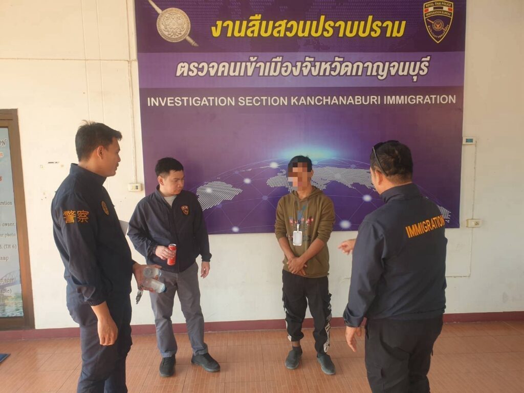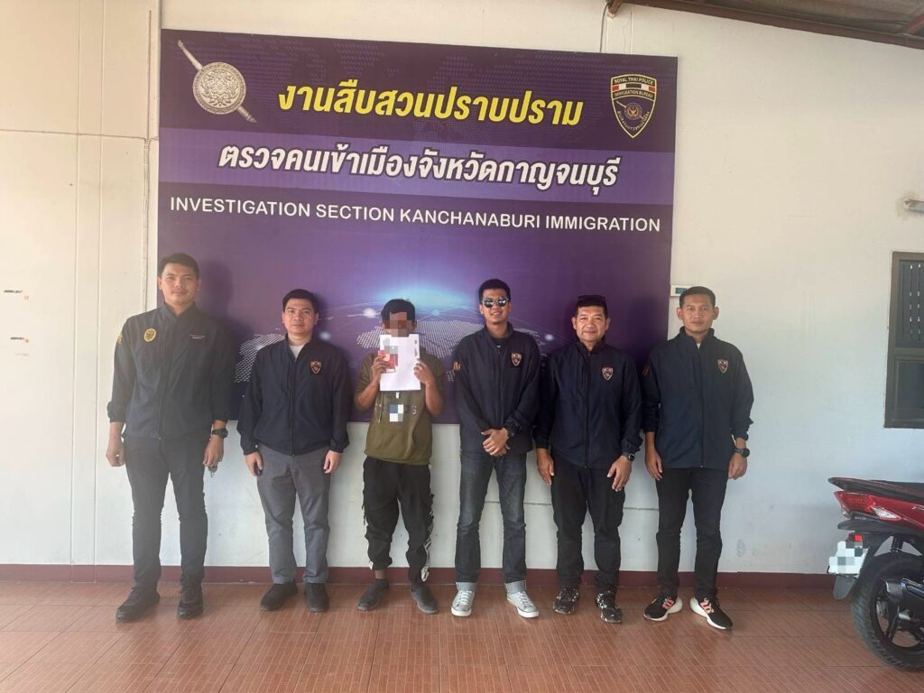 วันที่ 29 มี.ค.2568 เวลา 11.00 น. ภายใต้การอำนวยการของ พล.ต.ท.ภาณุมาศ บุญญลักษม์ ผบช.สตม.,พล.ต.ต.พันธนะ นุชนารถ รอง ผบช.สตม.,พล.ต.ต.ชัยฤทธิ์ อนุฤทธิ์ ผบก.ตม.3,พ.ต.อ.กรณ์ สมคะเณย์ ผกก.ตม.จ.กาญจนบุรี,พ.ต.ท.ตฤณธวัช ปัญญาธร รอง ผกก.ตม.จ.กาญจนบุรี,ว่าที่ พ.ต.ต.ธนพงษ์ พลายเพชร สว.ตม.จ.กาญจนบุรี สั่งการให้ชุดสืบสวน ตม.จ.กาญจนบุรี บูรณาการร่วมกับ กก.2 บก.สส.สตม.,ตม.จ.ลพบุรี และ กก.วิเคราะห์ข่าวฯ บก .สอท.3