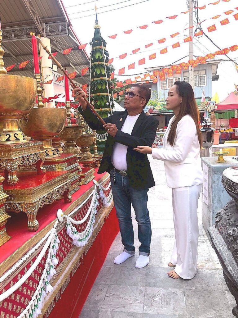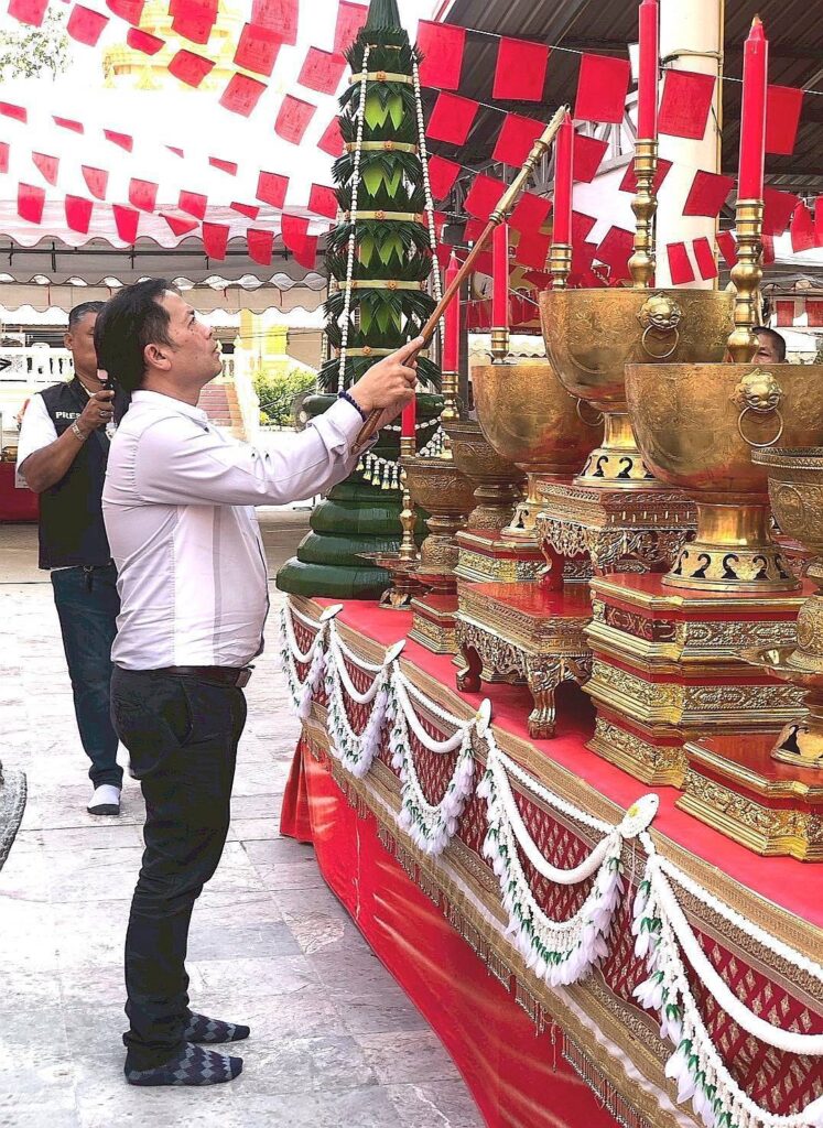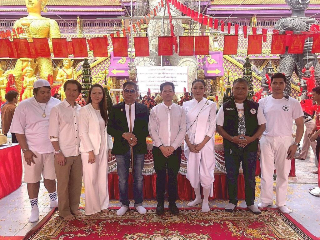จุดธูป-เทียน เบิกฤกษ์ พร้อมด้วย ท่านอาจารย์ ดร.อานนท์ แก้วมโนรมย์ ประธานมูลนิธิ เทพศรียันตรา , นางสาว สุภาพร แพบัว รองประธาน มูลนิธิ เทพศรียันตรา ประธานในพิธีจุดเทียนแดง สักการะบูชา เจ้าภาพถวายองค์ปู่เวสสุวรรณ หน้าทองคำ ทั้งสององค์ ขนาดความสูง 8 เมตร มูลค่ากว่า 1.6 ล้านบาท , ท่านอาจารย์แอร์ซินแสจิตสัมผัส ศิษย์หลวงปู่บุญยัง จุดเทียนแดง ,คุณ ธนวัฒน์ เขมกร ,อาจารย์ธนานันท์ เทพศรียันตรา,หมอมาชเทวะสุวรรณ ช่อง Answertarot คุณอยากรู้ไพ่ อยากตอบ , อินฟู “บิ๊กเบิร์ดสายมู”และ ท่านผู้มีเกียรติ มิตรศรัทธาสายบุญ ต่างมาร่วมอานิสงผลบุญใหญ่ในงานพิธีมงคลถวายองค์ท้าวแห่งยักษ์ทั้งสององค์ในงานมงคลพิธีบวงสรวง เบิกฤกษ์-เบิกชัย-เบิกเนตร องค์ท้าวเวสสุวรรณโณ หน้าทองคำ อย่างเนื่องแน่น ก่อนจะมีวิธีการสวดภาณยักษ์ในช่วงเย็นอีกครั้ง…