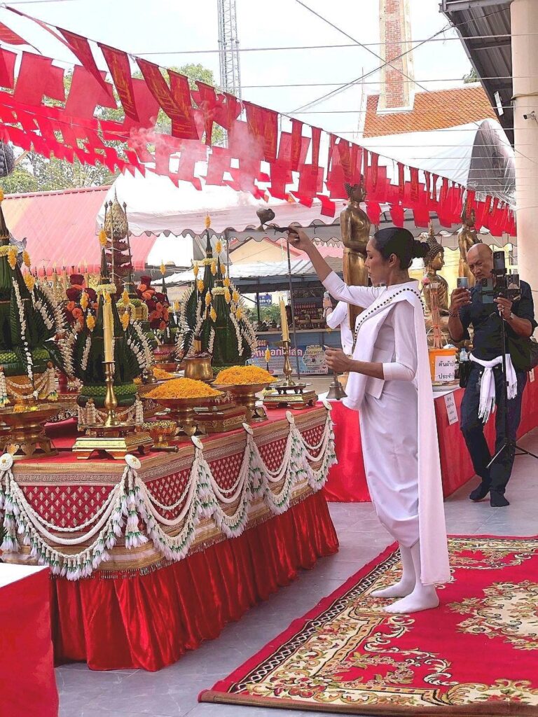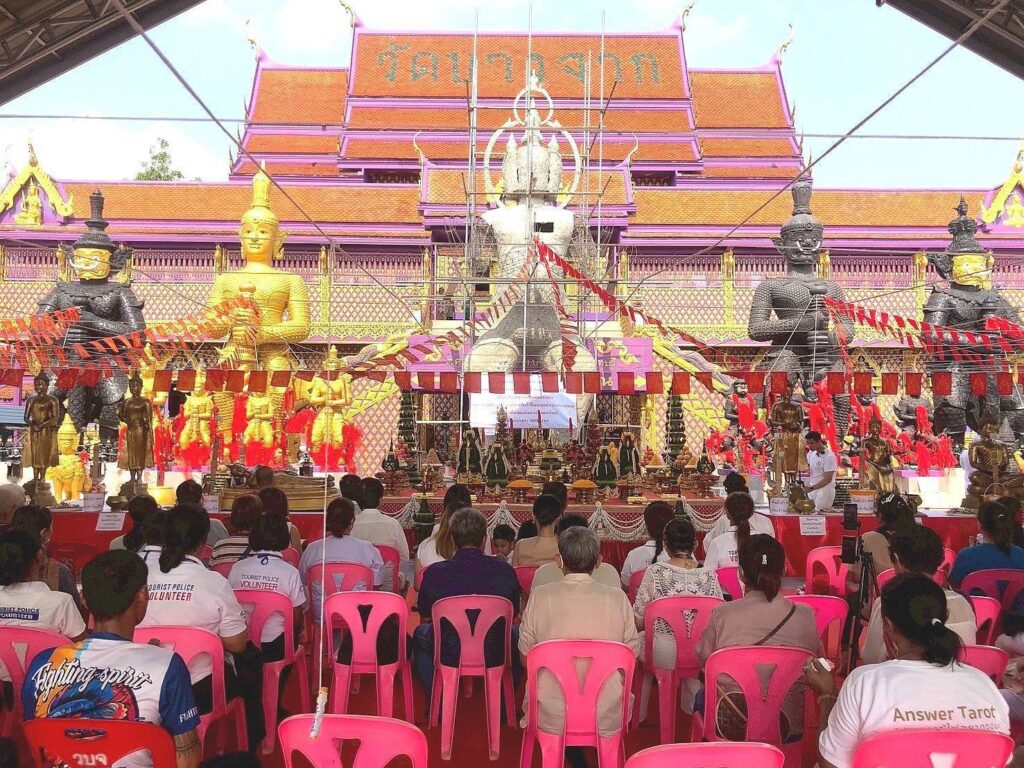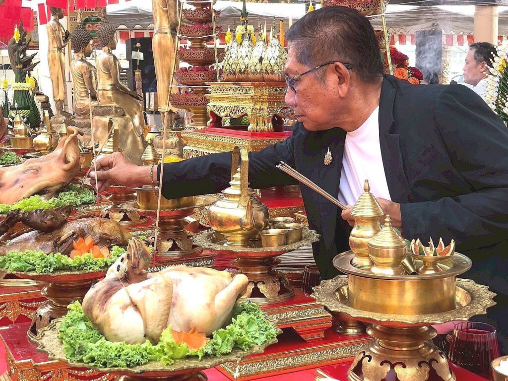 ผู้ประกอบพิธีกรรมบวงสรวงถวายสักการะบูชาต่อ,องค์ท้าวเวสสุวรรณปางปาฎิหาริย์ จตุรทิศ ,ท้าวเวสสุวรรณ หน้าทองคำ ทั้ง 2 องค์ ตลอดถึงสิ่งศักดิ์สิทธิ์ ครูบาอาจารย์ รูปเคารพ เทพเทวาต่างๆ ภายในวัดบางจาก ปากเกร็ด นนทุรี เพื่อความเป็นสิริมงคลในการครั้งนี้อีกด้วยครับ