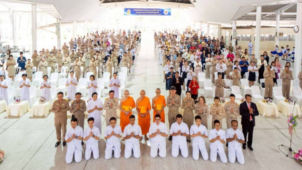 โดยในเวลา 07.30 น. เป็นพิธีทำบุญตักบาตรข้าวสารอาหารแห้งแด่พระสงฆ์ จำนวน 134 รูป เพื่ออุทิศส่วนกุศลแก่ผู้ทำคุณประโยชน์ให้กระทรวงศึกษาธิการ ที่ล่วงลับไปแล้ว ต่อมาในเวลา 09.00 น. นายองอาจ ณฐ ธรรมนิทา โฆษกคณะศิษยานุศิษย์วัดพระธรรมกาย กล่าวต้อนรับ จากนั้น เป็นการถ่ายทอดสดการกล่าวคำปราศรัยของ พล.ต.อ.เพิ่มพูน ชิดชอบ รัฐมนตรีว่าการกระทรวงศึกษาธิการ จากส่วนกลาง ก่อนเริ่มประกอบพิธีบำเพ็ญกุศลอุทิศแด่ผู้ทำคุณประโยชน์ให้กระทรวงศึกษาธิการ ที่ล่วงลับไปแล้ว ต่อด้วยพิธีเจริญพระพุทธมนต์เนื่องในโอกาสวันคล้ายวันสถาปนากระทรวงศึกษาธิการ ครบรอบ 133 ปี และพระครูปลัดรัตนวีรวัฒน์ เจ้าอาวาสวัดพระธรรมกาย ประธานสงฆ์ ได้เมตตาบรรยายธรรม นำปฏิบัติธรรมเจริญสมาธิ