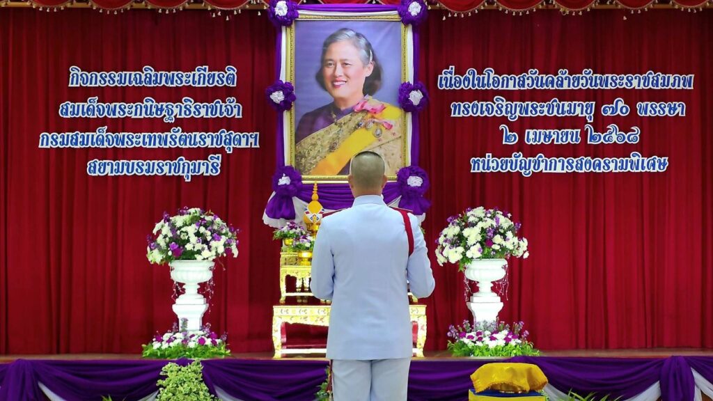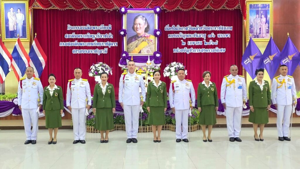 พล.ท.ณรงค์ฤทธิ์ คัมภีระ ผู้บัญชาการหน่วยบัญชาการสงครามพิเศษ เป็นประธาน นำข้าราชการกำลังพล ทหารหน่วยรบพิเศษ ในพื้นที่จังหวัดลพบุรี จาก 3 ค่าย ประกอบด้วย ค่ายสมเด็จพระนารายณ์มหาราช ค่ายวชิราลงกรณ์ และ ค่ายเอราวัณ พร้อมด้วย คณะสมาคมแม่บ้านแม่ทหารบก หน่วยบัญชาการสงครามพิเศษ เข้าร่วมพิธีถวายราชสดุดี เฉลิมพระเกียรติ พร้อมร่วมกันขับร้องเพลงสรรเสริญพระบารมี ต่อเบื้องหน้า พระฉายาลักษณ์ สมเด็จพระกนิษฐาธิราชเจ้า กรมสมเด็จพระเทพรัตนราชสุดาฯ สยามบรมราชกุมารี เนื่องในโอกาสเฉลิมพระชนมพรรษา 70 พรรษา 2 เมษายน 2568 เพื่อแสดงออกซึ่งความจงรักภัคดี และสำนึกในพระมหากรุณาธิคุณ สมเด็จพระกนิษฐาธิราชเจ้า กรมสมเด็จพระเทพรัตนราชสุดาฯ สยามบรมราชกุมารี ที่ทรงปฏิบัติบำเพ็ญพระราชกรณียกิจน้อยใหญ่นานัปการ เพื่อประโยชน์อันมหาศาลของประเทศชาติ ให้แก่ประชาชนชาวไทยมาอย่างยาวนาน ณ แหล่งสมาคมหน่วยบัญชาการสงครามพิเศษ อำเภอเมือง จังหวัดลพบุรี