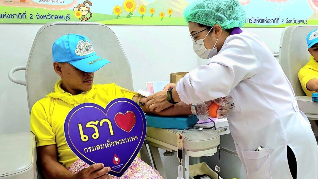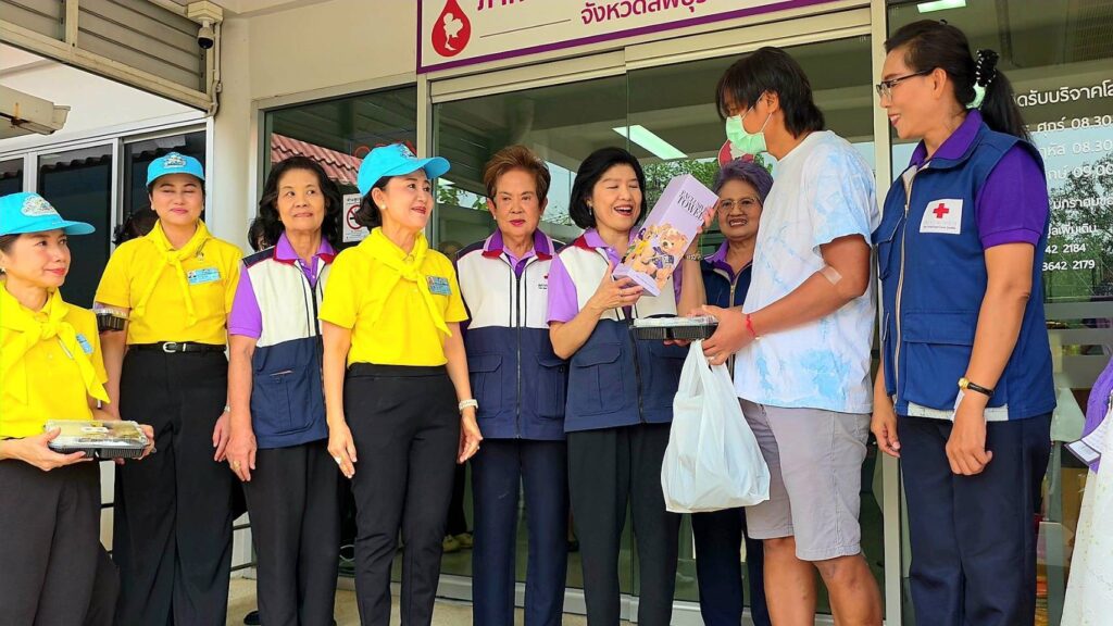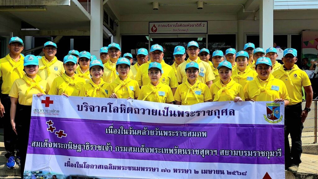 คุณจารุวรรณ ยังรักษา ประธานสมาคมแม่บ้านทหารบก สาขาศูนย์สงครามพิเศษ พร้อมด้วย นางสุวจี ศิริปัญโญ นายกเหล่ากาชาดจังหวัดลพบุรี นำคณะสมาคมแม่บ้านทหารบก สาขาศูนย์สงครามพิเศษ คณะกรรมการเหล่ากาชาดจังหวัดลพบุรี ร่วมกับภาคบริการโลหิตแห่งชาดที่ 2 จังหวัดลพบุรี นำรถครัวสนามเคลื่อนที่ จากกองบริการ ศูนย์สงครามพิเศษ พร้อมด้วยกำลังพลจิตอาสาของหน่วย ออกให้บริการประกอบเลี้ยงอาหารกลางวัน ในเมนูข้าวผัดกระเพาอกไก่ ไข่ต้ม พร้อมผลไม้ และน้ำดื่ม เพื่อแจกจ่ายให้แก่ประชาชน และกำลังพลของหน่วยงานทหารในพื้นที่จังหวัดลพบุรี ที่เดินทางมาบริจาคโลหิต รวมถึงเจ้าหน้าที่ และบุคลากรทางการแพทย์ ที่คอยให้บริการแก่ผู้บริจาคโลหิต ณ สำนักงานภาคบริการโลหิตแห่งชาดที่ 2 จังหวัดลพบุรี พร้อมเยี่ยมให้กำลังใจแก่ผู้บริจาคโลหิต เพื่อเป็นขวัญกำลังใจ เพื่อเป็นการร่วมกันทำความดี ถวายเป็นพระราชกุศลฯ ครั้งยิ่งใหญ่ ตลอดจนแสดงออกซึ่งความจงรักภัคดี และสำนึกในพระมหากรุณาธิคุณ ของสมเด็จพระกนิษฐาธิราชเจ้า กรมสมเด็จพระเทพรัตนราชสุดาฯ สยามบรมราชกุมารี ที่ทรงปฏิบัติบำเพ็ญพระราชกรณียกิจน้อยใหญ่นานัปการ เพื่อประโยชน์อันมหาศาลของประเทศชาติ และประชาชนชาวไทยมาอย่างยาวนาน เนื่องในโอกาสเฉลิมพระชนมพรรษา 70 พรรษา โดยมีโลหิตที่ได้ จำนวนทั้งสิ้น 169 ยูนิต รวม 67,600 ซีซี
