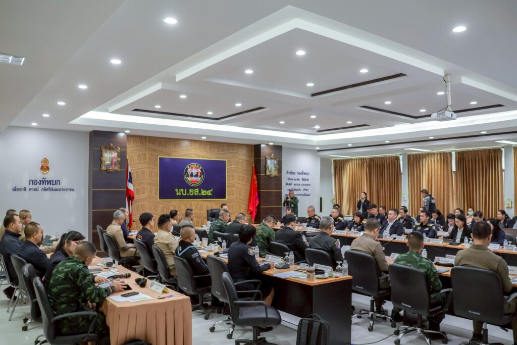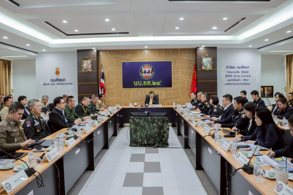 เมื่อวันที่ 3 เมษายน 2568 เวลา 0930 น. ที่ห้องประชุมพระยอด กองบังคับการมณฑลทหารบกที่ 210 ค่ายพระยอดเมืองขวาง ตำบลกุรุคุ อำเภอเมือง จังหวัดนครพนม พันเอกศิวดล ยาคล้าย ผู้อำนวยการส่วนอำนวยการ หน่วยบัญชาการ สกัดกั้น และปราบปรามยาเสพติด สารตั้งต้น และเคมีภัณฑ์ ชายแดน ภาคตะวันออกเฉียงเหนือ ให้การต้อนรับ นายศิริสุข ยืนหาญ รองเลขาธิการคณะกรรมการป้องกันและปราบปรามยาเสพติด พร้อมคณะ ในการลงพื้นที่ตรวจเยี่ยมกำกับติดตามการดำเนินงานตามแผน ปฏิบัติการสกัดกั้นและปราบปรามยาเสพติด Seal Stop Safe ผนึกกำลัง 51 อำเภอชายแดน งบประมาณ 2568 ในพื้นที่รับผิดชอบของ หน่วยบัญชาการ สกัดกั้น และปราบปรามยาเสพติด สารตั้งต้น และเคมีภัณฑ์ ชายแดนภาคตะวันออกเฉียงเหนือ (นบ.ยส.24) โดยมี โดย ผู้แทนสำนักยุทธศาสตร์, สำนักงานป้องกันและปราบปรามยาเสพติด ภาค 4 พร้อมด้วยหัวหน้าส่วนราชการในพื้นที่ จังหวัดนครพนม เข้าร่วมประชุม และวันที่ 2 เมษายน 2568 คณะผู้แทนสำนักยุทธศาสตร์ได้ลงพื้นที่ บ้านแสนพันท่า หมู่ที่ 4 ตำบลแสนพัน อำเภอธาตุพนม จังหวัดนครพนม ตรวจเยี่ยมและรับฟังบรรยายสรุปผลการดำเนินงาน กองร้อยเฉพาะกิจทหารพรานที่ 2109 หน่วยเฉพาะกิจกรมทหารพรานที่ 21 บริเวณวัดศรีสะอาด บ้านเหล่านนาด ตำบลพนอม อำเภอท่าอุเทน จังหวัดนครพนม ตรวจเยี่ยมและรับฟังบรรยายสรุปผลการดำเนินงานในหมู่บ้าน/ชุมชน พื้นที่ชายแดน ตำบลท่าจำปา อำเภอท่าอุเทน จังหวัดนครพนม