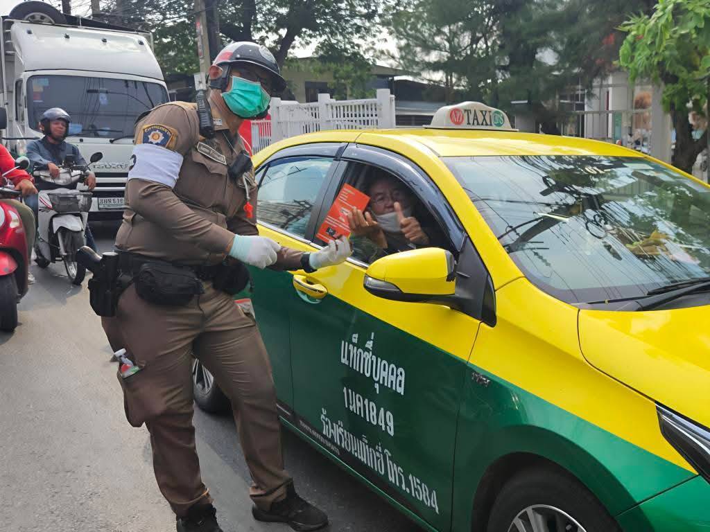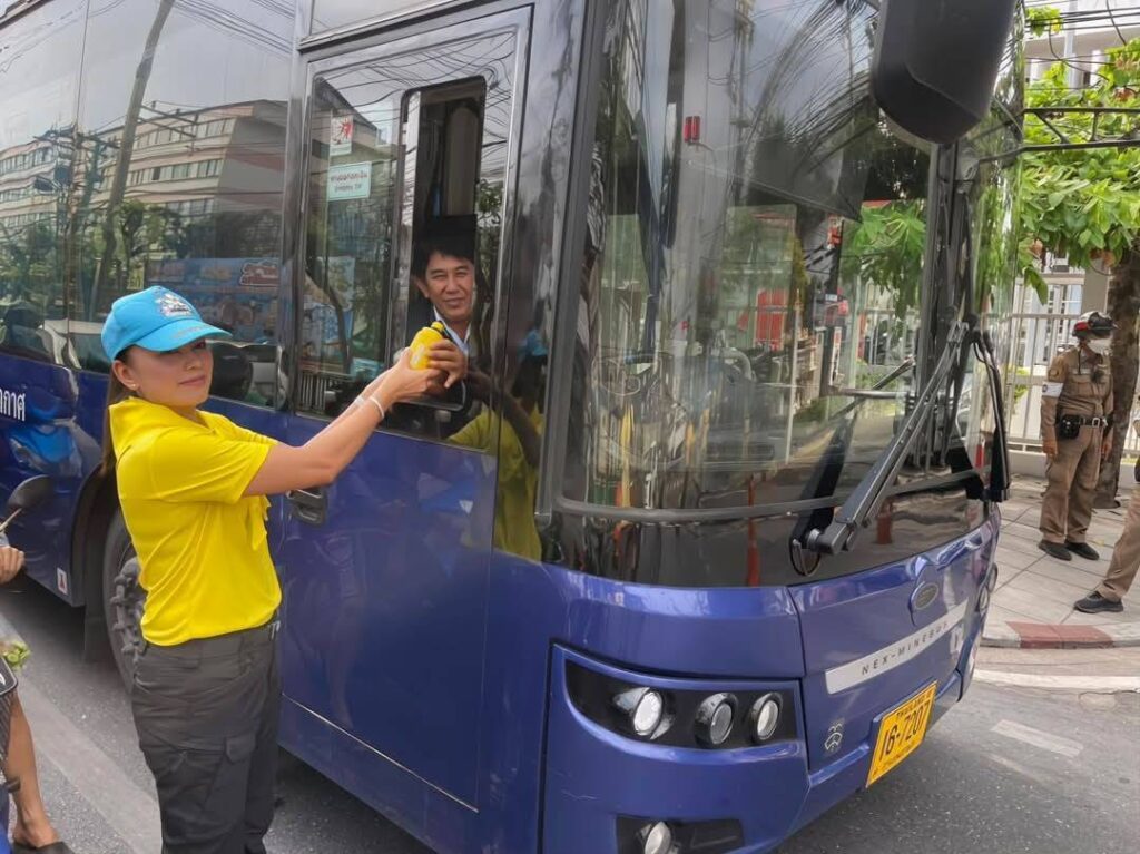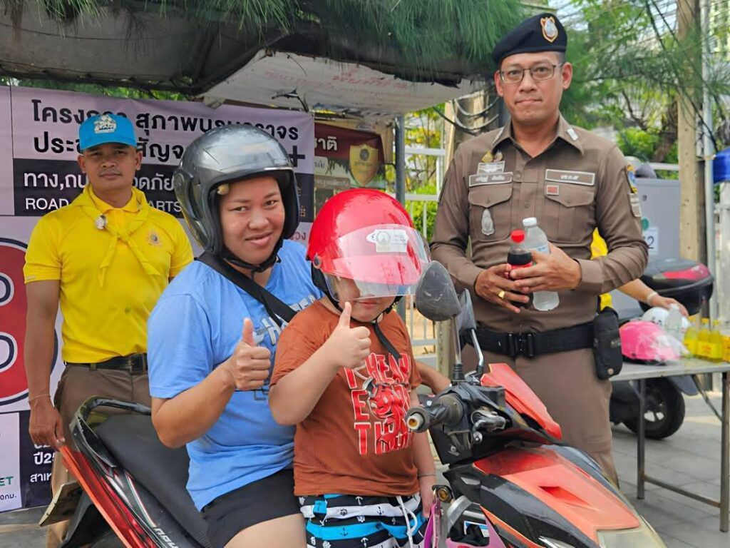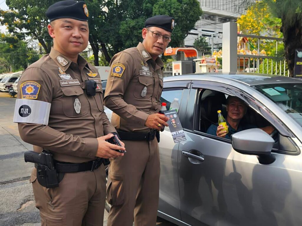 พ.ต.ท.พลัฏฐ์ ทับทิม รอง ผกก.จร.สน.บางขุนเทียน, พ.ต.ท.โกมินทร์ อัตโสภณวัฒนา สว.จร.สน.บางขุนเทียน พร้อมเจ้าหน้าที่ตำรวจจราจร สน.บางขุนเทียน และจิตอาสา ดำเนินโครงการ ประชาสัมพันธ์รณรงค์ป้องกันความสูญเสียจากอุบัติเหตุจราจร เนื่องในเทศกาลสงกรานต์ พ.ศ.2568 ณ.บริเวณแยกวัดสิงห์ ถนนเอกชัย