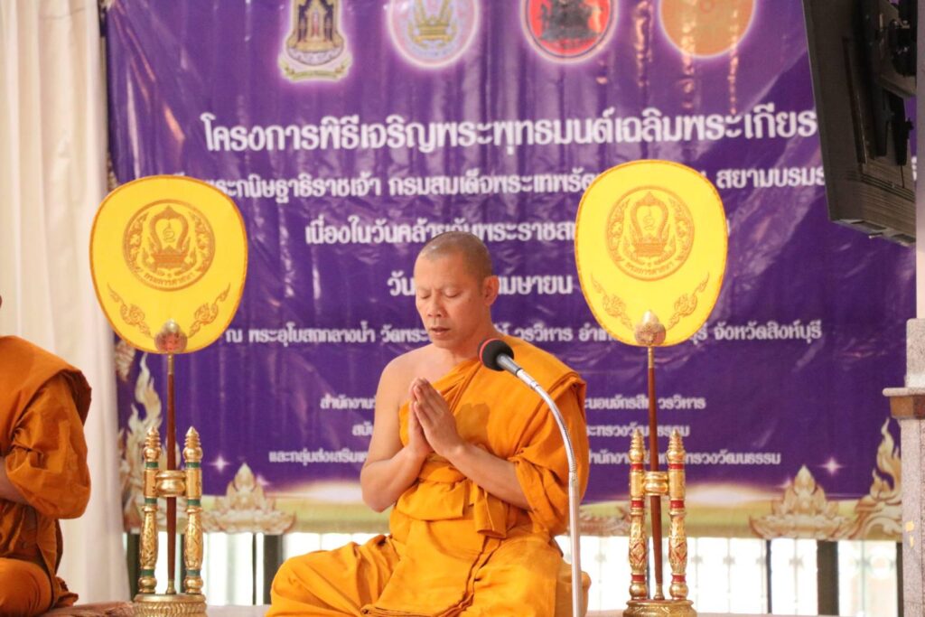 วันที่ 1 เมษายน 2568 เวลา 13.30 น. นายสุเมธ ธีรนิติ ผู้ว่าราชการจังหวัดสิงห์บุรี เป็นประธานพิธีบวชศีลจาริณี ภายใต้โครงการเสริมสร้างคุณธรรมจริยธรรม ค่านิยมและความเป็นไทย ประจำปีงบประมาณ พ.ศ.2568 เฉลิมพระเกียรติสมเด็จพระกนิษฐาธิราชเจ้า กรมสมเด็จพระเทพรัตนราชสุดาฯ สยามบรมราชกุมารี เนื่องในโอกาสวันคล้ายวันพระราชสมภพ 2 เมษายน ณ ศาลาปฏิบัติธรรมวัดจำปาทอง ตำบลโพประจักษ์ อำเภอท่าช้าง จังหวัดสิงห์บุรี โดยมี นางวาสนา ธีรนิติ นายกเหล่ากาชาดจังหวัดสิงห์บุรี นางสาววีรวรรณ จันทนเสวี รองผู้ว่าราชการจังหวัดสิงห์บุรี นายอำเภอ หัวหน้าส่วนราชการ ข้าราชการ และประชาชนจังหวัดสิงห์บุรี ร่วมพิธีพร้อมเพรียงกัน