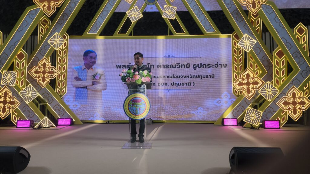 ที่ ลาน Alive Park Hall ศูนย์การค้าFuture Park & Zpell ตำบลประชาธิปัตย์ อำเภอธัญบุรี จังหวัดปทุมธานี องค์การบริหารส่วนจังหวัดปทุมธานี จัดงานโครงการสนับสนุนเพื่อพัฒนาสินค้าและส่งเสริมอาชีพจังหวัดปทุมธานี ขึ้น โดยมี พลตำรวจโท คำรณวิทย์ ธูปกระจ่าง หรือ บิ๊กแจ๊ส นายกองค์การบริหารส่วนจังหวัดปทุมธานี เป็นประธานเปิดงาน พร้อมทั้งยังมี นายนพพร ขาวขำ รองนายก อบจ.ปทุมธานี นางสาวพัชร์ชิสา พชิระธารีรัตน์ รองนายก อบจ.ปทุมธานี นางสาวกัลยา กมลรัตน์ ผู้อำนวยการด้านการตลาดศูนย์การค้าFuture Park & Zpell นายสมภพ วรรณแมน ปลัดองค์การบริหารส่วนจังหวัดปทุมธานี คณะผู้บริหารส่วนราชการ สมาชิกสภาองค์การบริหารส่วนจังหวัดปทุมธานี เข้าร่วมงาน โดยจัดงานขึ้น ระหว่างวันที่ 3-7 เมษายน 2568จำนวน 5 วัน ประกอบไปด้วยกิจกรรมการจำหน่ายผลิตภัณฑ์ของชุมชน และผลิตภัณฑ์อื่นๆ ตลอดจนการจัดกิจกรรมประชาสัมพันธ์ส่งเสริมการจัดงาน โดยได้รับความร่วมมือจากหน่วยงานต่างๆ เช่น พัฒนาชุมชนจังหวัด, เกษตรจังหวัด, พาณิชย์จังหวัด, พัฒนาสังคมและความมั่นคงของมนุษย์จังหวัด และหน่วยงานอื่นๆ ที่เข้ามาร่วมกิจกรรมการจัดโครงการครั้งนี้