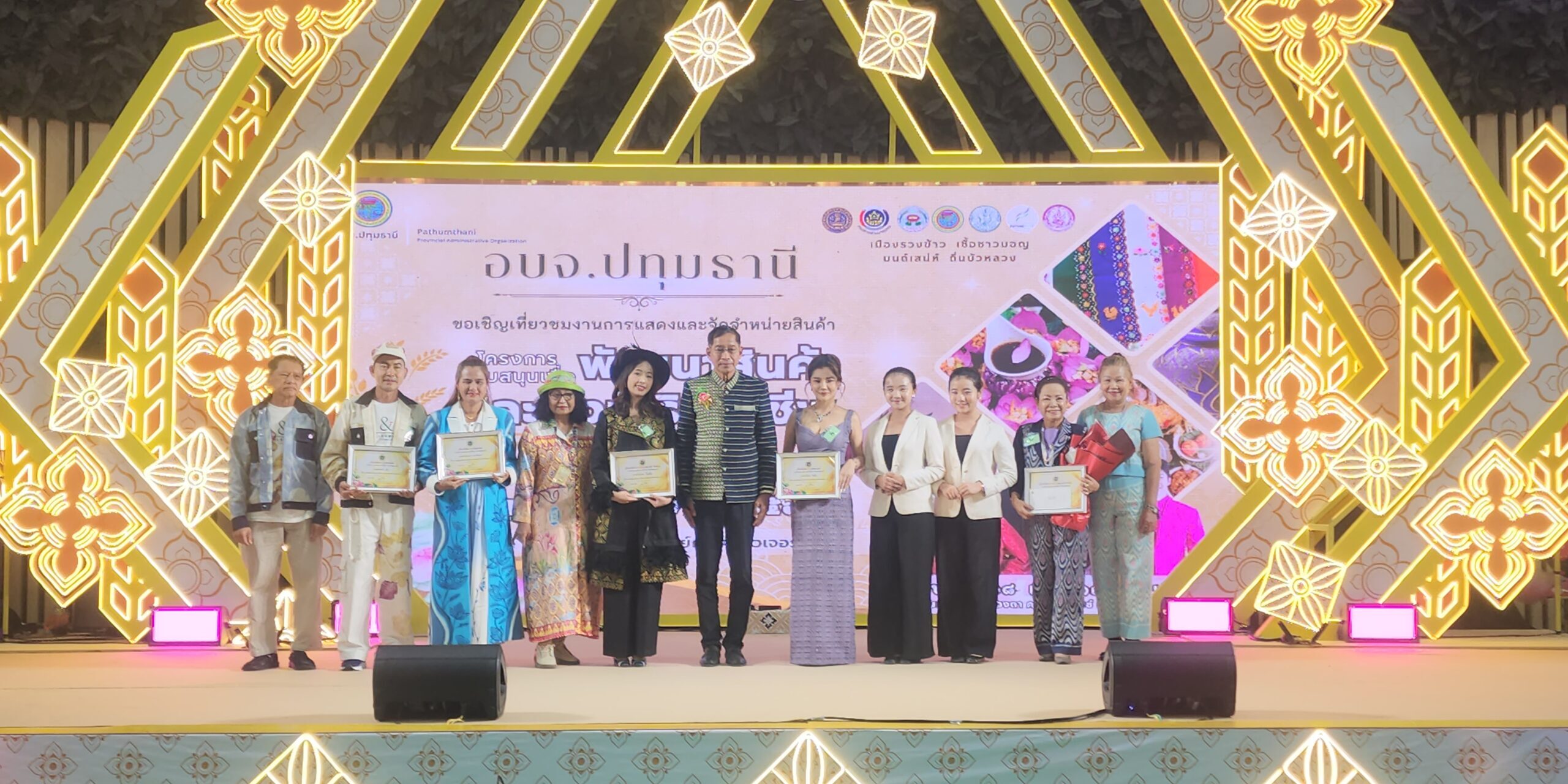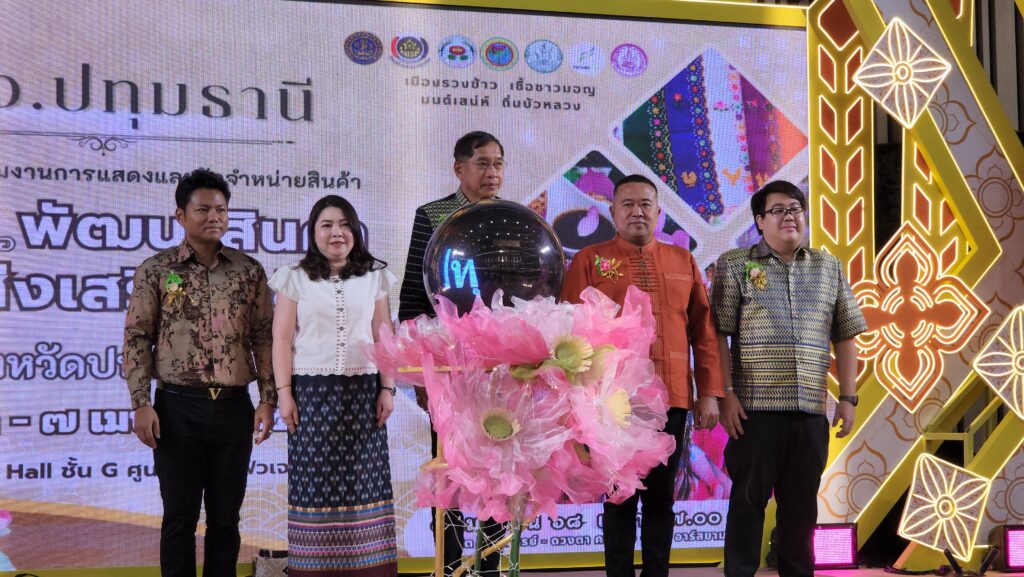 สำหรับการจัดงานโครงการสนับสนุนเพื่อพัฒนาสินค้าและส่งเสริมอาชีพจังหวัดปทุมธานี องค์การบริหารส่วนจังหวัดปทุมธานี ได้จัดขึ้นเพื่อพัฒนาอาชีพให้ประชาชน ส่งเสริมการพัฒนาสินค้า หนึ่งตำบลหนึ่งผลิตภัณฑ์ (OTOP)ในจังหวัดปทุมธานี เสริมสร้างวิสาหกิจขนาดกลาง ขนาดย่อมให้เกิดขึ้นในจังหวัดมากที่สุด และเพื่อเป็นการฟื้นฟูเศรษฐกิจของชุมชนทุกระดับให้สามารถมีรายได้ และเป็นการพัฒนาผลิตภัณฑ์ชุมชน รวมทั้งเสริมสร้างประสิทธิภาพของผลิตภัณฑ์ชุมชนให้มีประสิทธิภาพมากขึ้น เปิดโอกาสให้ประชาชนทั่วไปได้รู้จักผลิตภัณฑ์ชุมชนของจังหวัดปทุมธานี รวมถึงเป็นการขยายตลาดในการจำหน่ายผลิตภัณฑ์ชุมชนให้กับผู้ผลิต ผู้บริโภค เพื่อเสริมสร้างรายได้ไห้กับผู้ผลิตอีกทางหนึ่ง โดยไฮไลท์ของงาน คือการเดินแบบผ้าไทย จากผลงานผลิตภันฑ์ในจังหวัดปทุมธานี โดยมี พลตำรวจโท คำรณวิทย์ ธูปกระจ่าง หรือ บิ๊กแจ๊ส นายกองค์การบริหารส่วนจังหวัดปทุมธานี คณะผู้บริหารส่วนราชการ และ สจ.เข้าร่วมเดินโชว์ชุดในวันนี้ด้วย