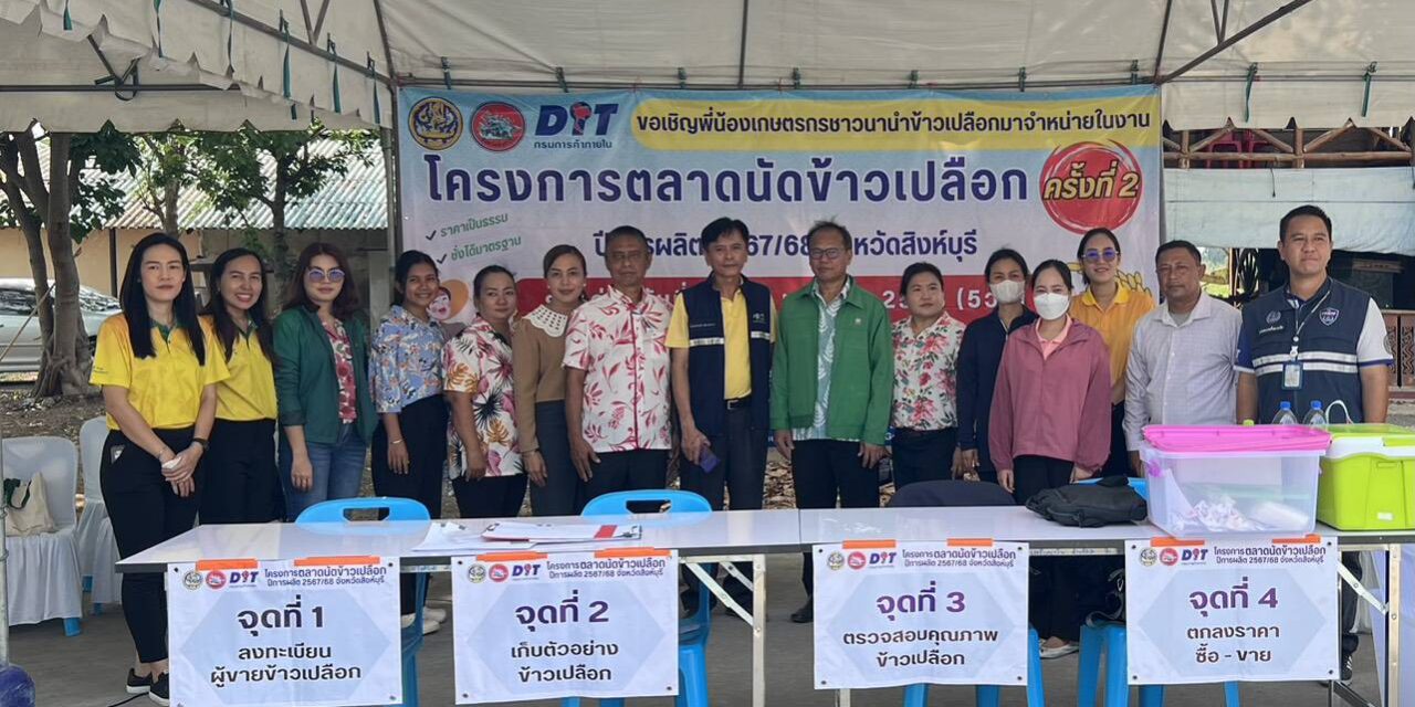 สำนักงานพาณิชย์จังหวัดสิงห์บุรี จัดโครงการตลาดนัดข้าวเปลือกรับซื้อข้าวปีการผลิต 2567/68 ครั้งที่ 2 เพื่อช่วยเหลือชาวนาในการต่อรองราคากับผู้ประกอบการ