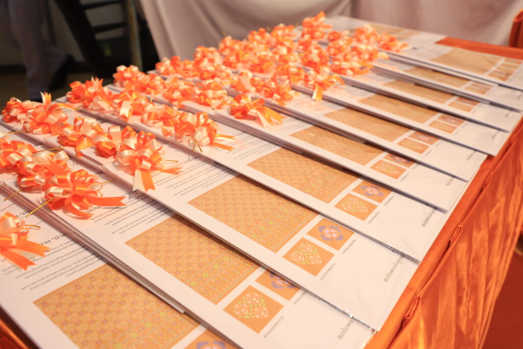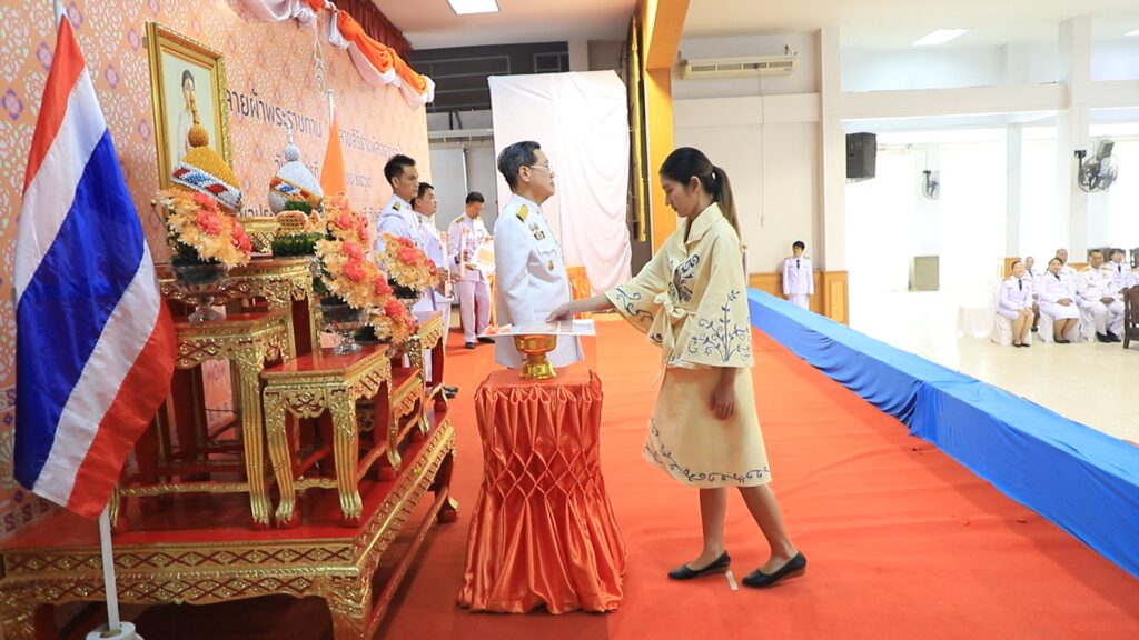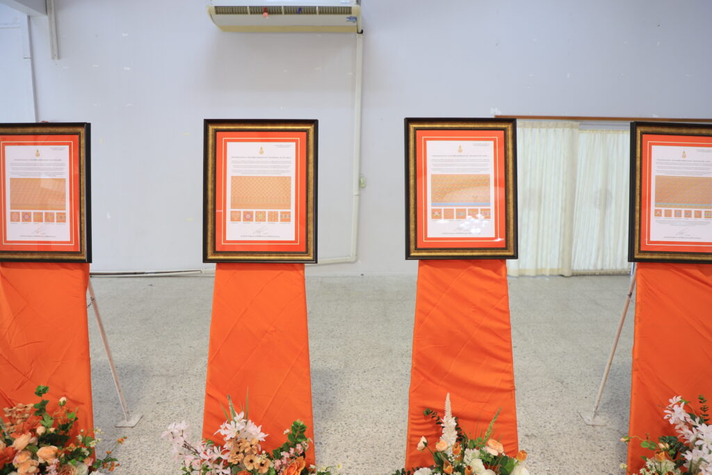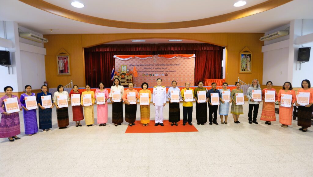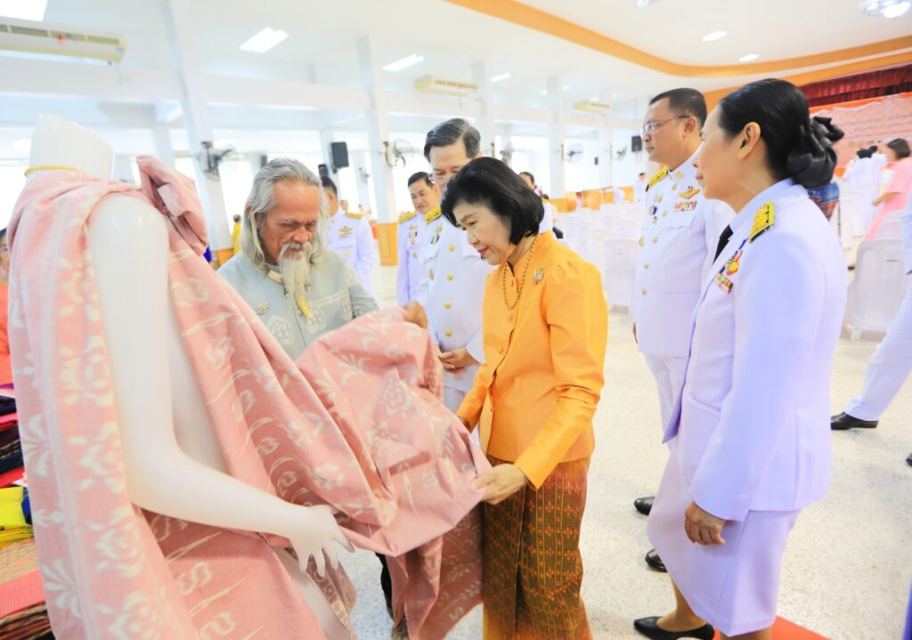 จากนั้น ประธานในพิธีฯ ได้เชิญลายผ้าพระราชทาน “ผ้าลายสิริราชพัสตราภรณ์” ประเภทผ้ามัดหมี่, ประเภทผ้ายก, จก, ขิด, แพรวา และประเภทผ้าบาติก ลายที่ 1 และ 2 มอบให้กลุ่มเป้าหมาย ประกอบด้วย ประธานแม่บ้านมหาดไทยจังหวัดลพบุรี นายอำเภอ ทั้ง 11 อำเภอ และผู้แทนกลุ่มทอผ้าจังหวัดลพบุรี จำนวน 39 กลุ่ม เพื่อนำแบบลายผ้าพระราชทานไปเป็นต้นแบบในการพัฒนาและสร้างมูลค่าให้กับผลิตภัณฑ์ผ้าไทยและงานหัตถกรรมต่อไป
