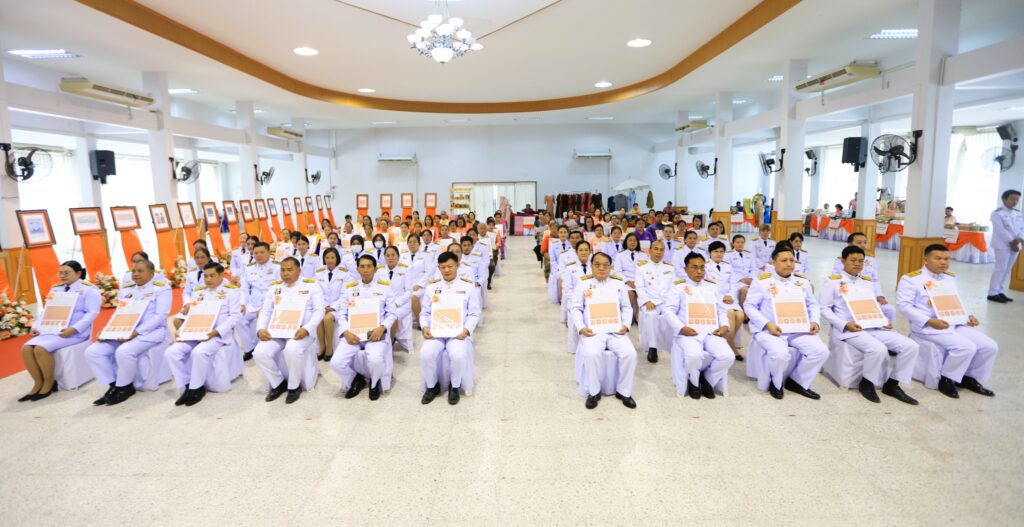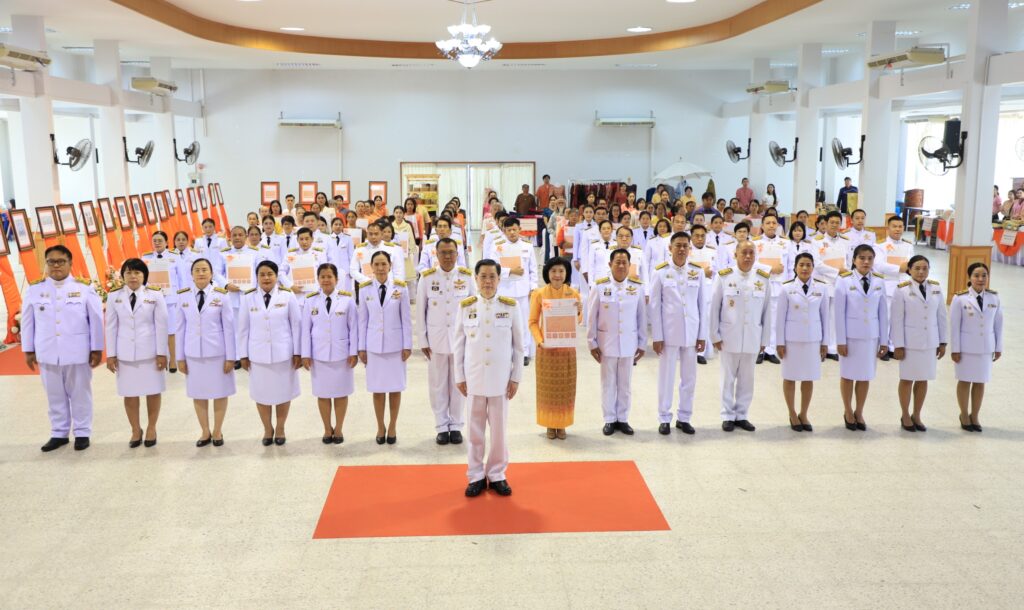 วันที่ 8 เมษายน 2568 เวลา 09.30 น. ที่ หอประชุมอำเภอเมืองลพบุรี จังหวัดลพบุรี นายอำพล อังคภากรณ์กุล ผู้ว่าราชการจังหวัดลพบุรี เป็นประธานในพิธีมอบแบบลายผ้าพระราชทาน “ผ้าลายสิริราชพัสตราภรณ์” โดยมีนางสุวจี ศิริปัญโญ ประธานแม่บ้านมหาดไทยจังหวัดลพบุรี นายประยูร ศิริวรรณ รองผู้ว่าราชการจังหวัดลพบุรี พร้อมด้วย หัวหน้าส่วนราชการ นายอำเภอ ข้าราชการ เจ้าหน้าที่ กลุ่มผู้ผลิต ผู้ประกอบการ OTOP ประเภทผ้าเครื่องแต่งกาย ช่างทอผ้า และช่างหัตถกรรม จำนวน 39 กลุ่ม