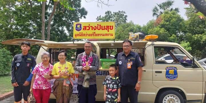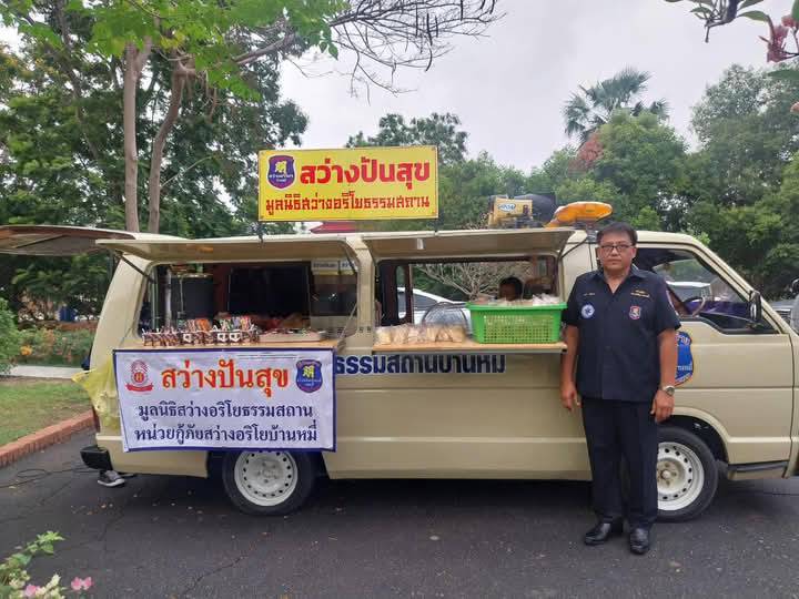 กับแนวคิดการทำรถปันสุขของมูลนิธิสว่างอริโยธรรมสถาน พร้อมร่วมถ่ายภาพกับเจ้าหน้าที่กู้ภัยและรถปันสุข