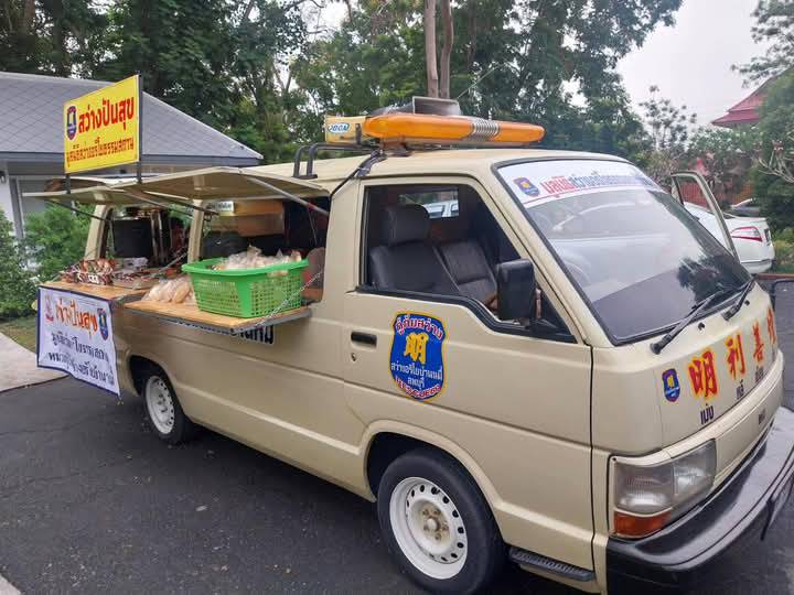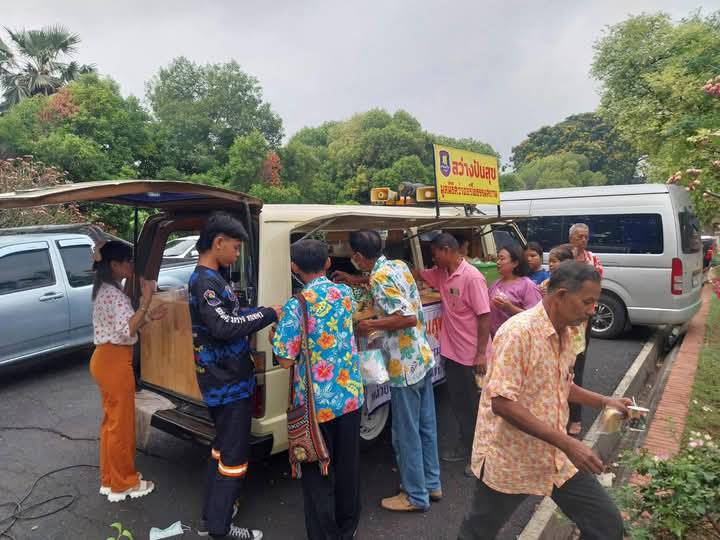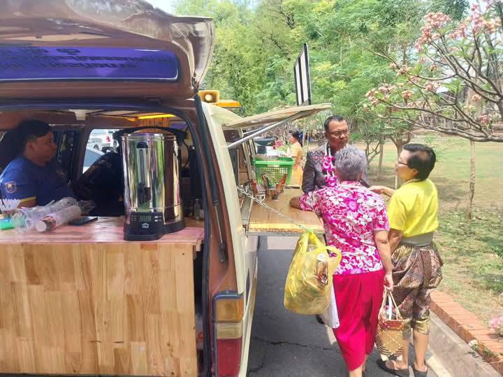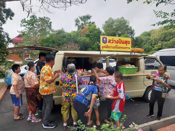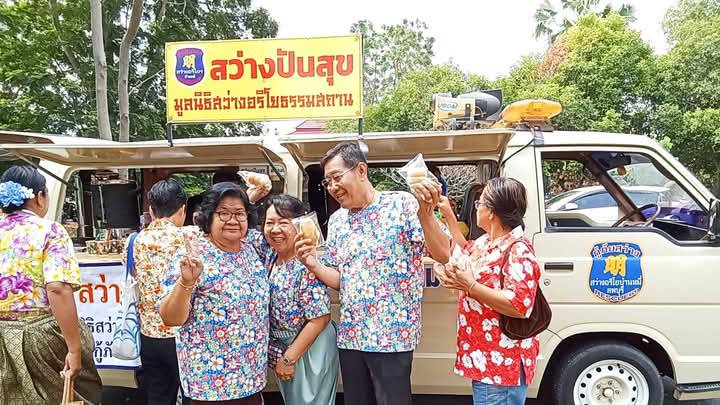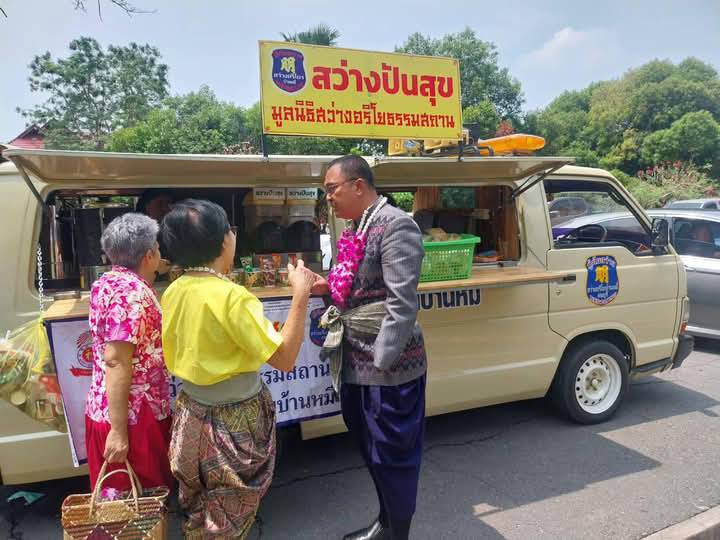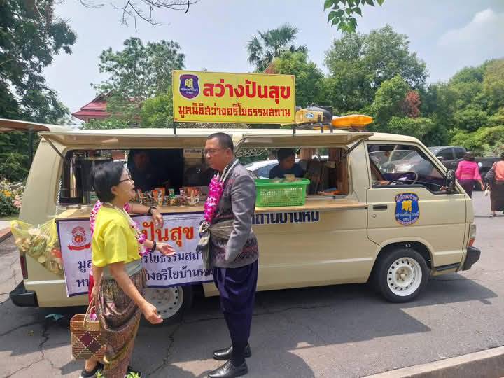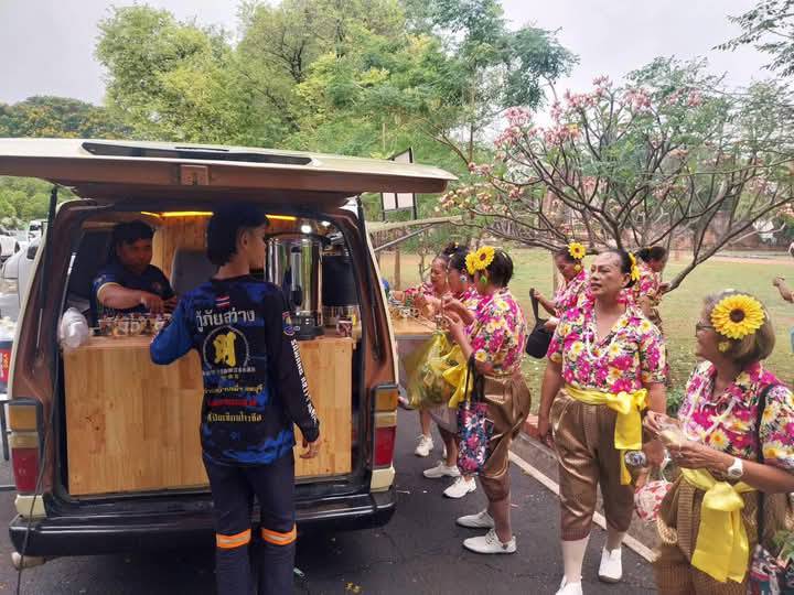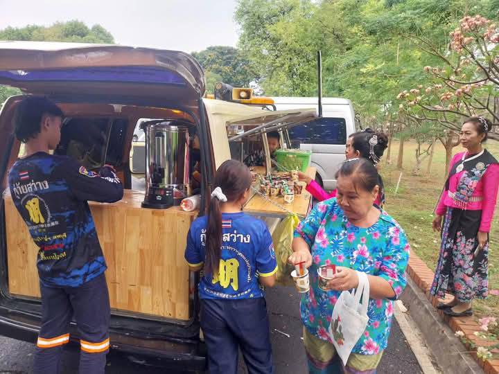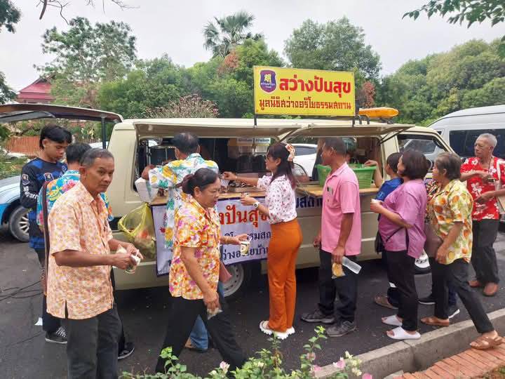 รถปันสุข ของมูลนิธิสว่างอริโยธรรมสถาน บ้านหมี่ ได้นำน้ำดื่ม น้ำอัดลม กาแฟร้อน ไมโล โอวัลติน และขนมปัง ออกโรงทาน ณ พระที่นั่งเย็น จ.ลพบุรี ในงานโครงการขับเคลื่อนวันผู้สูงอายุ และวันครอบครัว ประจำปี 2568