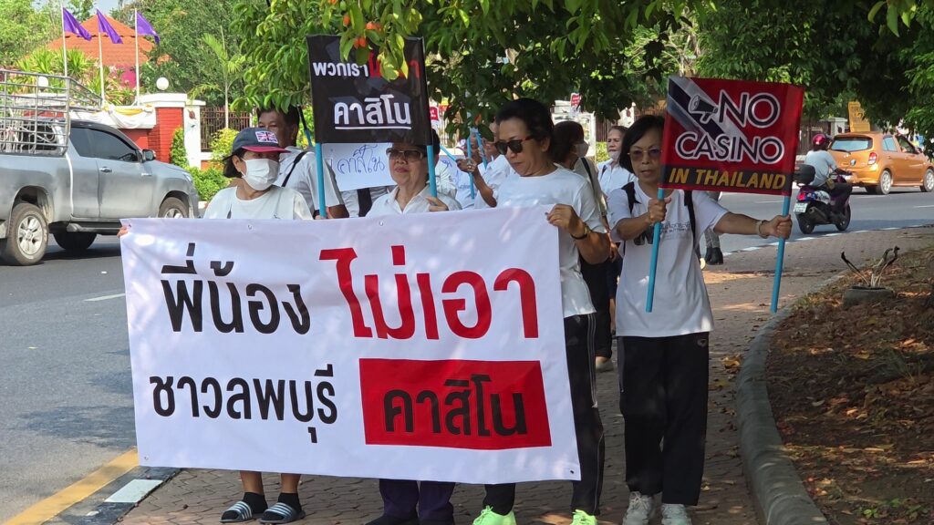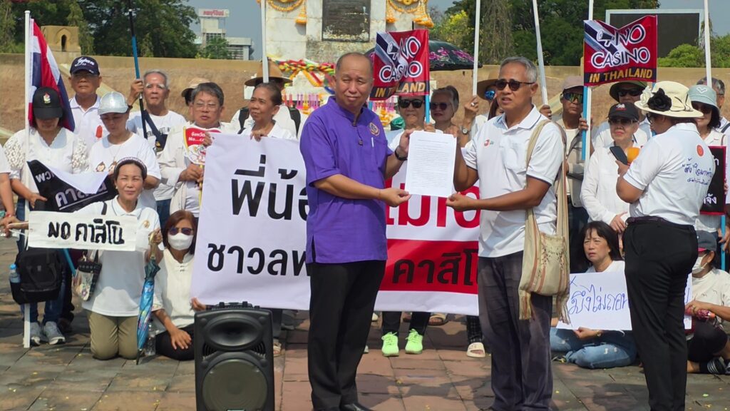 ที่ วงเวียนสมเด็จพระนารายณ์มหาราช อ.เมือง จ.ลพบุรี กลุ่มภาคีเครือข่ายผู้ก่อการดี ในฐานะตัวแทนของประชาชนชาวลพบุรี กว่า 100 คน ได้พร้อมใจกันสวมใส่เสื้อสีขาว โบกสะบัดธงชาติไทย พร้อมชูแผ่นป้ายข้อความต่างๆ เพื่อร่วมกันแสดงจุดยืนคัดค้านพระราชบัญญัติการประกอบธุรกิจสถานบันเทิงครบวงจรฯ พร้อมต้านคาสิโนในประเทศไทย โดยก่อนหน้ากลุ่มภาคีเครือข่ายตัวแทนประชาชนชาวลพบุรี ได้มีการตั้งโต๊ะตามจุดต่างๆ เพื่อร่วมกันลงรายชื่อ และรวบรวมรายชื่อประชาชน เพื่อคัดค้าน พ.ร.บ.ดังกล่าวแล้ว กว่า 5,000 รายชื่อ เพื่อยื่นต่อ ประธานรัฐสภา หัวหน้าพรรคการเมือง และสมาชิกรัฐสภา ผ่านผู้ว่าราชการจังหวัดลพบุรี โดยมี ดร.กาสัก เต๊ะขันหมาก เป็นตัวแทนประชาชน มอบหนังสื่อเปิดผนึก และรายชื่อประชาชน โดยมี นายมนูญ โอฆชล ผู้อำนวยการกลุ่มงานศูนย์ดำรงธรรมจังหวัดลพบุรี เป็นตัวแทนในการรับมอบ