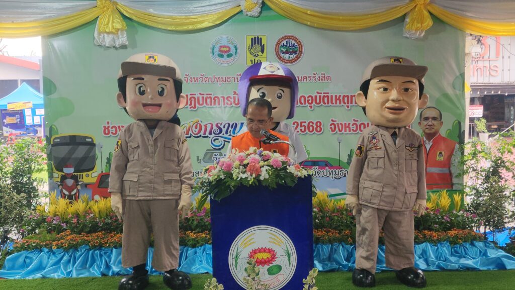 วันที่ 10 เมษายน 2568 เวลา 14.30 น. ณ ตลาดกินซ่า ท่ารถตู้ต่างจังหวัดขาออก (ตรงข้ามศูนย์การค้า ฟิวเจอร์พาร์ค รังสิต) ตำบลประชาธิปัตย์ อำเภอธัญบุรี จังหวัดปทุมธานี นายสมคิด จันทมฤก ผู้ว่าราชการจังหวัดปทุมธานี เป็นประธานเปิดศูนย์ปฏิบัติการป้องกันและลดอุบัติเหตุทางถนนช่วงเทศกาลสงกรานต์ จังหวัดปทุมธานี พ.ศ.2568 ซึ่งใช้ชื่อการรณรงค์ว่า ขับขี่ปลอดภัย เมืองไทยไร้อุบัติเหตุ โดยมีพลอากาศตรี อภิรัตน์ รังสิมากร ผู้อำนวยการสำนักนโยบายและแผน กรมกิจการพลเรือนทหารอากาศ กองทัพอากาศ หัวหน้าส่วนราชการจังหวัดปทุมธานี ผู้แทนองค์การบริหารส่วนจังหวัดปทุมธานี ผู้แทนผอ.รมน.จังหวัดปทุมธานี พร้อมด้วยคณะกรรมการศูนย์ปฏิบัติการป้องกันและลดอุบัติเหตุทางถนนช่วงเทศกาลสงกรานต์ จังหวัดปทุมธานี พ.ศ.2568 อำเภอ ทุกแห่ง สถานีตำรวจภูธร ทุกแห่ง ผู้บริหารเทศบาลนครรังสิต หน่วยงานภาคเอกชน มูลนิธิ จิตอาสา อาสาสมัครป้องกันภัยฝ่ายพลเรือน เข้าร่วมพิธีเปิด