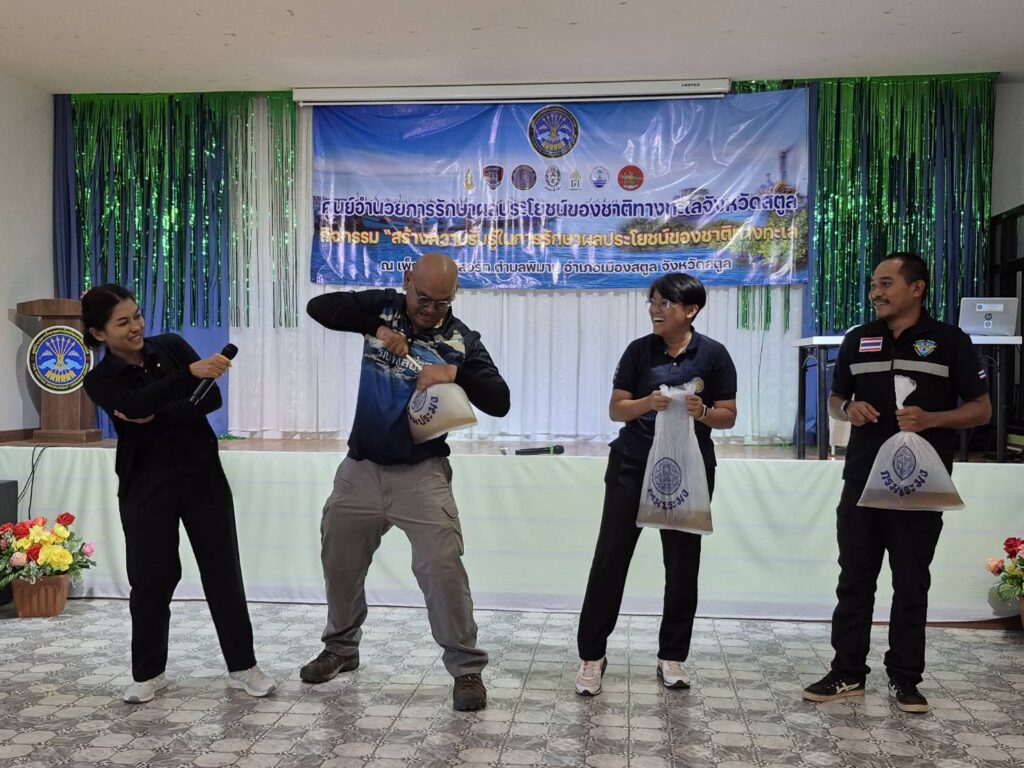 พล.ร.ท.สุวัจ ดอนสกุล ผู้อำนวยการ ศรชล.ภาค 3 มอบหมายให้ ศรชล.จว.สตูล/ศคท.จว.สตูล/นก.พตต.ศรชล.ภาค 3 จัดกิจกรรมสร้างความรับรู้ในการรักษาผลประโยชน์ของชาติทางทะเลในพื้นที่จังหวัดสตูล โดยมี น.อ.แสนย์ไท บัวเนียม ร.น. รองผู้อำนวยการ ศรชล.จว.สตูล/ผบ.นก.พตต.ศรชล.ภาค 3 เป็นประธานในพิธีเปิดกิจกรรมฯ และ น.อ.รัฐพล แก้วกระจาย ร.น. หัวหน้า ศคท.จว.สตูล เป็นผู้กล่าวรายงานวัตถุประสงค์ในการจัดกิจกรรมฯ ทั้งนี้มีผู้เข้าร่วมกิจกรรมฯ ซึ่งเป็นเจ้าหน้าที่หน่วยงานภาครัฐ เอกชน ประชาชน และสื่อมวลชนในพื้นที่จังหวัดสตูลเข้าร่วมกิจกรรมฯ จำนวน 50 คน ณ เพ็ญทิพย็ รีสอร์ท ตำบลพิมาน อำเภอเมือง จังหวัดสตูล สำหรับการจัดกิจกรรมฯ ประกอบด้วย บรรยายให้ความรู้เกี่ยวกับ ศรชล., การรักษาผลประโยชน์ของชาติทางทะเล, การอนุรักษ์ทรัพยากรทางทะเล, การอนุรักษ์ทรัพยากรป่าชายเลน, การเดินเรือในน่านน้ำไทย, ประเภทของเรือและมาตรการรักษาความปลอดภัยทางน้ำ, การอนุรักษ์และความสำคัญของสัตว์น้ำ, ปล่อยพันธุ์สัตว์น้ำ ลูกกุ้งแชบ๊วย จำนวน 80,000 ตัว ลงสู่ทะเล ณ ท่าเทียบเรือกรมหลวงชุมพรเขตอุดมศักดิ์ ซึ่งในการนี้ได้รับการสนับสนุนพันธุ์สัตว์น้ำจากศูนย์วิจัยและพัฒนาประมงทะเลสตูล และได้รับความอนุเคราะห์อำนวยความสะดวกในการเข้าศึกษาธรรมชาติป่าชายเลน ณ ศูนย์อนุรักษ์ทรัพยากรป่าชายเลนที่ 24 (ตำมะลัง สตูล) เพื่อให้ผู้เข้าร่วมกิจกรรมฯ ได้รับรู้และเข้าใจถึงความสำคัญในการรักษาผลประโยชน์ของชาติทางทะเลและการปฏิบัติงานของ ศรชล. รวมทั้งอำนาจหน้าที่ของ ศรชล. อีกทั้งได้มีส่วนร่วมในการรักษาผลประโยชน์ของชาติทางทะเล การอนุรักษ์ทรัพยากรทางทะเล และเป็นเครือข่ายในการแจ้งเหตุด่วน เหตุร้าย ภัยทางทะเล สายด่วน ๑๔๖๕ การปฏิบัติเป็นไปด้วยความเรียบร้อย