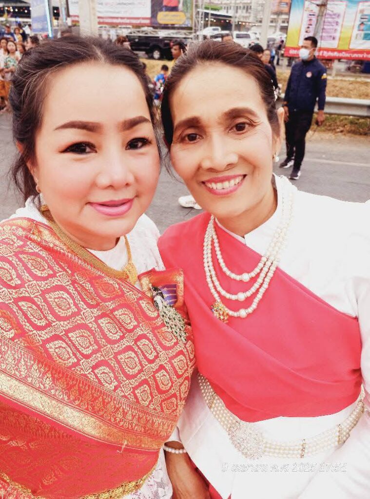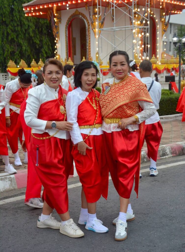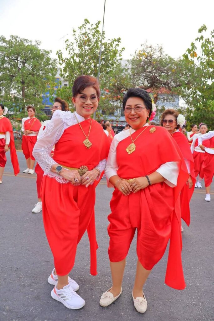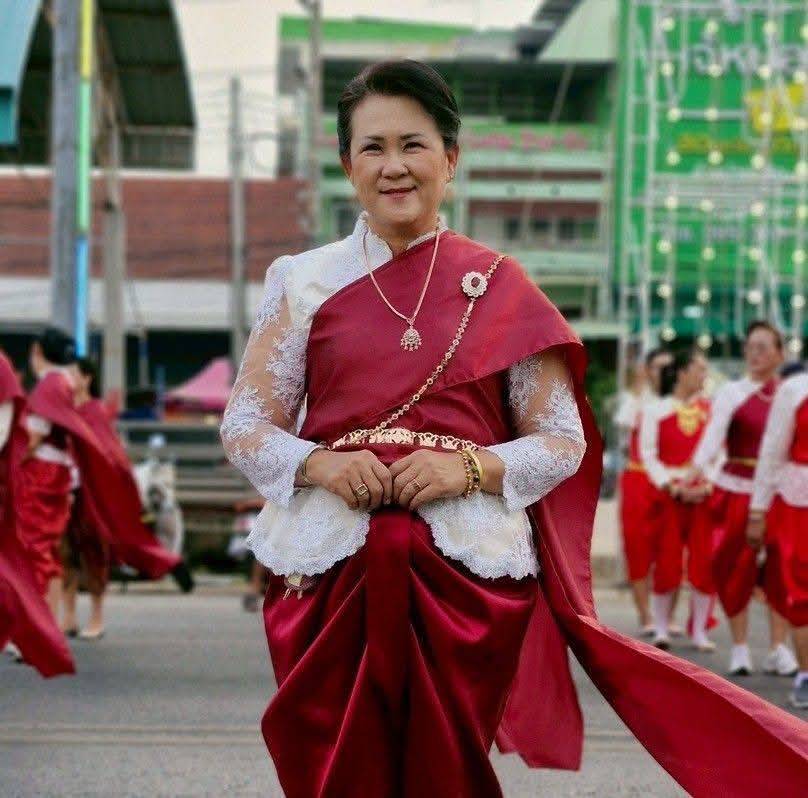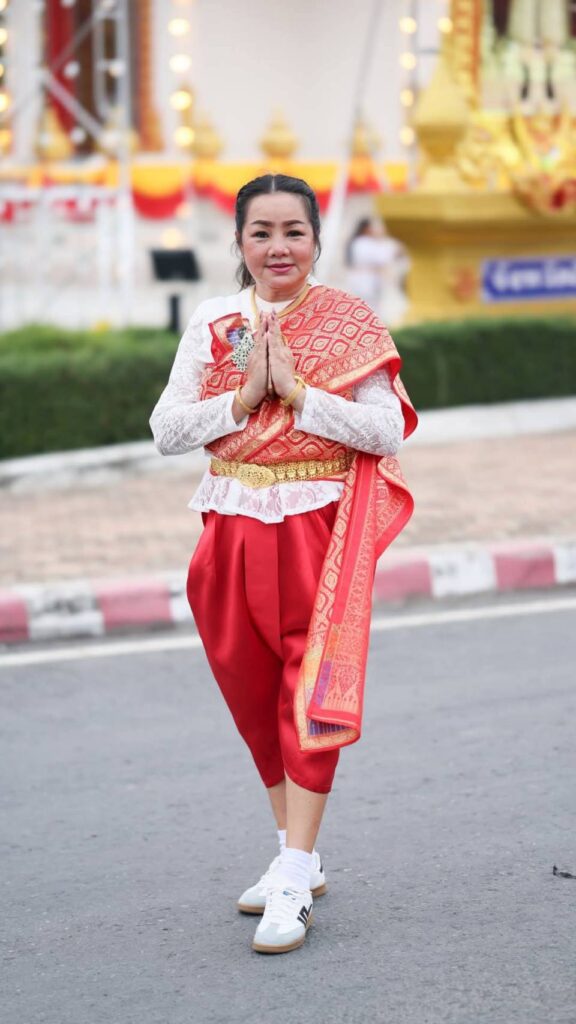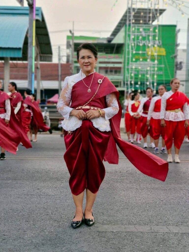 ชุดที่ใส่รำของนางรำจะเห็นว่าคล้ายๆ กัน เสื้อขาวโจงแดง ห่มสไบแดง ซึ่งนางรำส่วนใหญ่จะมีอยู่แล้ว เนื่องจากในชุมชนต่างๆ จะมีการจัดกิจกรรม จัดงานบ่อย และก็จะมีการรำกันอย่างนี้เกือบทุกงาน เช่น เทศบาลเมืองสิงห์บุรีมี 14 ชุมชน เวลาชุมชนใดชุมชนหนึ่งจัดงาน ชุมชนอื่นๆ ก็จะเกณฑ์นางรำไปช่วยกันรำ ชุมชนละ 30 คนบ้าง 50 คนบ้าง ก็เลยทำให้การแต่งกายนั้นเป็นไปในแนวทางเดียวกัน