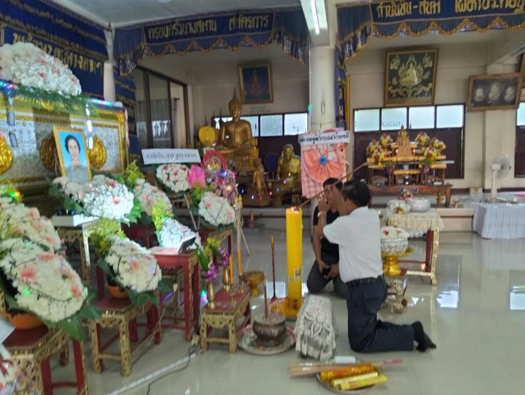 ประธานรดน้ำศพของ “นางละเอียด หลอดทอง อายุ 82 ปี หมู่ที่ 1 บ้านมะขามเฒ่า” ณ วัดบ้านมะขามเฒ่า ต.หนองทรายขาว อ.บ้านหมี่ จ.ลพบุรี