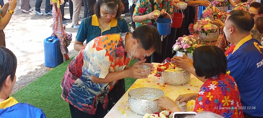 วันนี้ 11 เมษายน 2568 เวลา 12.30น.นายวราดิศร อ่อนนุช พร้อมนางสาววีรวรรณ จันทนเสวี รองผู้ว่าราชการจังหวัดสิงห์บุรีทั้งสอง ผู้บังคับการตำรวจภูธรจังหวัดสิงห์บุรีพร้อมด้วยหัวหน้าส่วนราชการ ข้าราชการ ผู้บริหารท้องถิ่น และคณะกรรมการเหล่ากาชาดจังหวัดสิงห์บุรี ร่วมรดน้ำขอพรจากนายสุเมธ ธีรนิติ ผู้ว่าราชการจังหวัดสิงห์บุรี และนางวาสนา ธีรนิติ นายกเหล่ากาชาดจังหวัดสิงห์บุรี เพื่อเป็นการอนุรักษ์วัฒนธรรมไทย เป็นการแสดงความรัก ความเคารพ และความนับถือต่อผู้ว่าราชการจังหวัดสิงห์บุรี เพื่อเป็นการขอพรและเพื่อความเป็นสิริมงคลแก่ชีวิตในช่วงประเพณีสงกรานต์ ซึ่งถือว่าเป็นวันขึ้นปีใหม่ของไทย