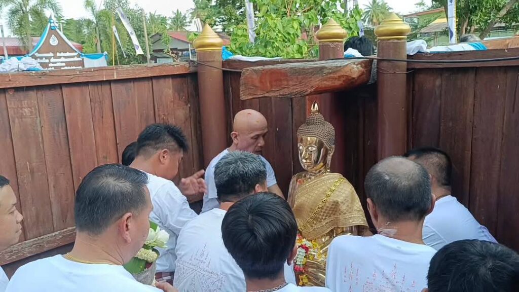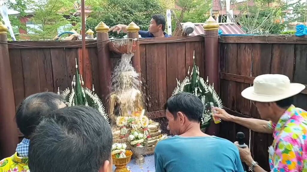 บ้านโภคาภิวัฒน์นั้น มีสเน่ห์และเอกลักษณ์ที่โดดเด่นต่างจากที่อื่น โดยเฉพาะอย่างยิ่ง คือ พิธีสรงน้ำพระ ชาวไทยพวนบ้านโภคาภิวัฒน์ จะมีสถานที่สรงน้ำพระ โดยเฉพาะ เรียกว่า บ่อนสรงน้ำเจ๊าหัว คือมีลักษณะเป็นห้องสรงน้ำ เวลาจะสรงน้ำพระจะใช้วิธีการเทน้ำลงใส่ในรางไม้สักขุดด้านนอกห้องสรงน้ำ ให้ไหลเข้าไปในห้องสรงน้ำ