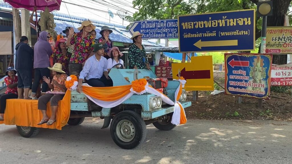 โดยตลอดเส้นทาง จะหยุดรถให้ประชาชนได้ร่วมทำบุญ และร่วมสรงน้ำหลวงพ่อห้ามจน ในเทศกาลสงกรานต์ และได้กราบไหว้ขอพรกันถ้วนหน้า ซึ่งผู้ที่มาร่วมงาน ก็ต่างไม่พลาด ที่จะขอโชคลาภ ด้วยการล้วงไห เพื่อจับลูกปิงปองเสี่ยงทาย ส่วนบางคน ก็ได้จุดธูปอธิฐาน จนเห็นตัวเลขปรากฎขึ้นมาอย่างเด่นชัด 7 2 5 สร้างความฮือฮาแก่ผู้พบเห็น ต่างหวังนำเลขเด็ดที่ได้ในวันนี้ ไปเตรียมเสี่ยงโชคกันตามความเชื่อต่อไป