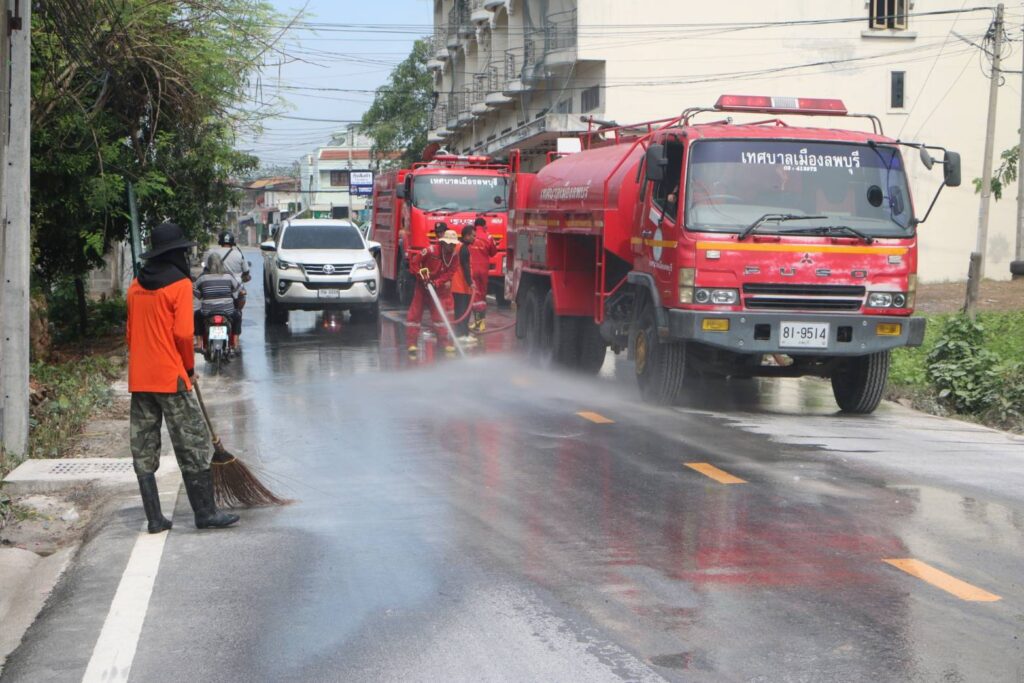 พนักงานเทศบาล และลูกจ้าง ได้ออกพัฒนาทำความสะอาดล้างถนนรามเดโช และถนนในเขตเทศบาลเมืองลพบุรี หลังเทศกาลสงกรานต์ประจำปี ๒๕๖๘