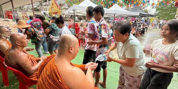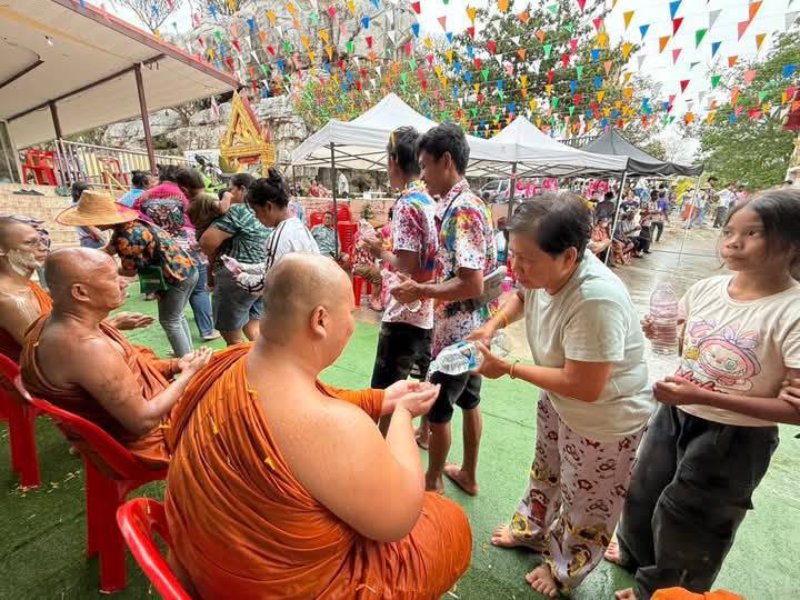 จัดกิจกรรม ทำบุญสงกรานต์ สรงน้ำขอพร พระพุทธรูป-พระภิกษุสงฆ์ แจกข้าวสาร-เสื้อคอกลมลายดอกให้กับผู้สูงอายุ ชาวบ้านปลื้ม เสริมสิริมงคลชีวิต-ครอบครัว…เนื่องในเทศกาลวันสงกรานต์