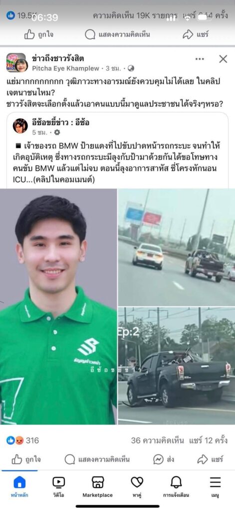 เมื่อวันที่ 17 เมษายน 2568 จากเหตุการณ์ นี่เป็นคลิปที่ชาวเน็ตส่งให้เพจเฟซบุ๊ก เฮียขับรถ ช่วยเปิดเผยพฤติกรรมของคนขับรถเก๋งหรู ป้ายแดง ที่ปาดหน้ารถกระบะสีดำ จนเสียหลักไปชนขอบทาง ทำให้คนขับซึ่งเป็นลุงได้รับบาดเจ็บสาหัส ซี่โครงหัก ต้องพักรักษาตัวอยู่ในห้องไอซียู ส่วนป้าที่มาด้วยได้รับบาดเจ็บเช่นกัน จุดเกิดเหตุคาดว่าน่าจะเป็นมอเตอร์เวย์ 9 บางปะอิน-บางพลี ช่วงบ่ายโมงกว่า ๆ ของเมื่อวาน