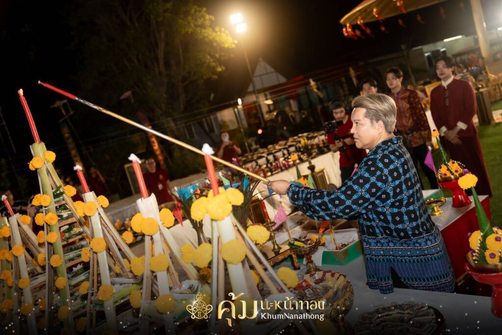 และในปีนี้ คุ้มนะหน้าทองโดย ดร.อาจารย์สุบิน และแม่ครูฟ้าใส ก็ได้จัดงานนี้ เพื่อให้เหล่าบรรดาลูกศิษย์ ได้มาร่วมบุญกัน งานนี้ ดร.วโรดม ศิริสุข (ชายแฮ็คส์) ก็เลยถือโอกาส เอาฤกษ์ดีนี้ พาสองนักแสดงนำซีรีส์วาย “ลอยแก้ว” เล้ง-ณัฐพล นิลดอนหวาย และ แสตมป์-พรวศิน เรืองนุกูล เข้าร่วมพิธี และลงนะหน้าทอง108 กับ ดร.อาจารย์สุบิน ตามความเชื่อในเรื่องของเสน่ห์ เรียกทรัพย์ บารมี