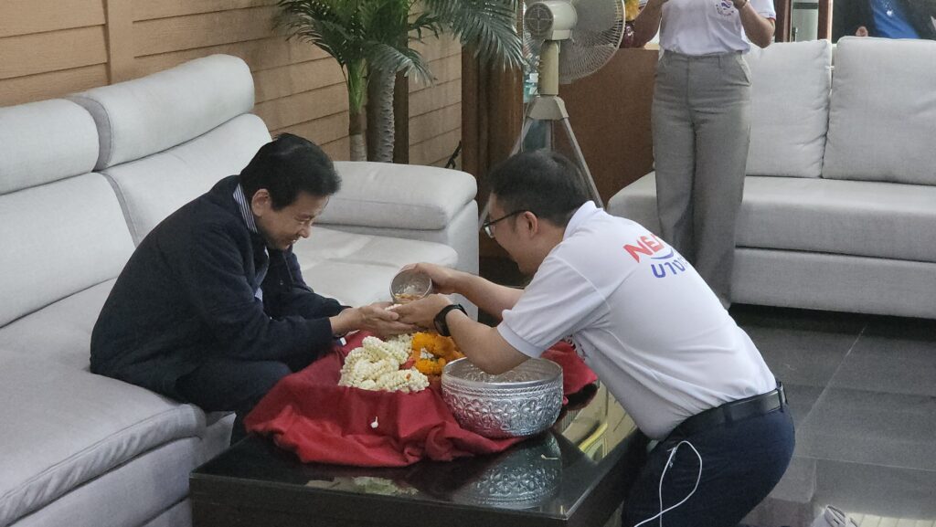 เมื่อเวลา 11.00 น. วันที่ 18 เมษายน 2568 ที่ โรงแรม ปทุมธานีเพลส 123 ถนนติวานนท์ ต.บางกะดี อ.เมือง จ.ปทุมธานีพลตำรวจโท คำรณวิทย์ ธูปกระจ่าง นายกองค์การบริหารส่วนจังหวัดปทุมธานี ในฐานะหัวหน้าครอบครัวคนรักปทุม นำทีมงานคนรักปทุม อาทิ นายนพพร ขาวขำ รองนายก อบจ.ปทุมธานี นายวิธาร์ รังสิวัฒนศักดิ์ รองประธานสภา อบจ.ปทุมธานี นางสาวพรปริญญา ศรีจันทร์ สมาชิกสภา อบจ.เขตเลือกตั้งที่ 5 อ.คลองหลวง นายสุริยา ธรรมธารา สมาชิกสภา อบจ.เขตเลือกตั้งที่ 1 อ.หนองเสือ นายอดิสร อยู่นาน สมาชิกสภา อบจ.เขตเลือกตั้งที่ 5 อ.เมืองปทุมธานี พร้อมด้วย นายสามารถ สุขารมณ์ ผู้สมัครนายกเทศมนตรีเมืองบางกะดี หมายเลข 2 นายธนกร(ต่อ)คงอุดม และทีมงานผู้สมัคร สท.ในนาม Next บางกะดี เข้ารดน้ำขอพรจาก นายชัชวาลล์ คงอุดม หรือที่รู้จักกันในชื่อ ชัช เตาปูน เนื่องใน โอกาสเทศกาลสงกรานต์