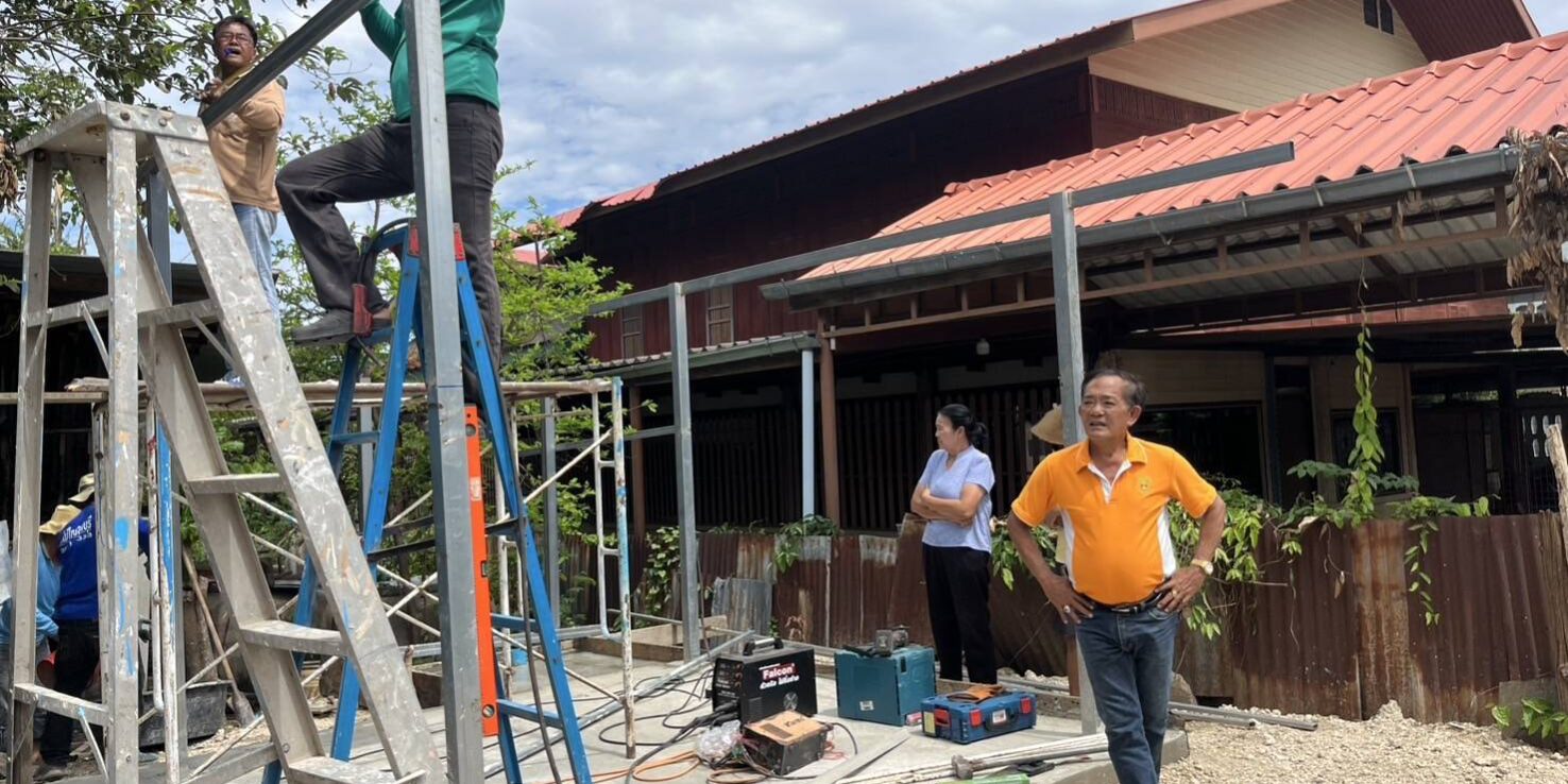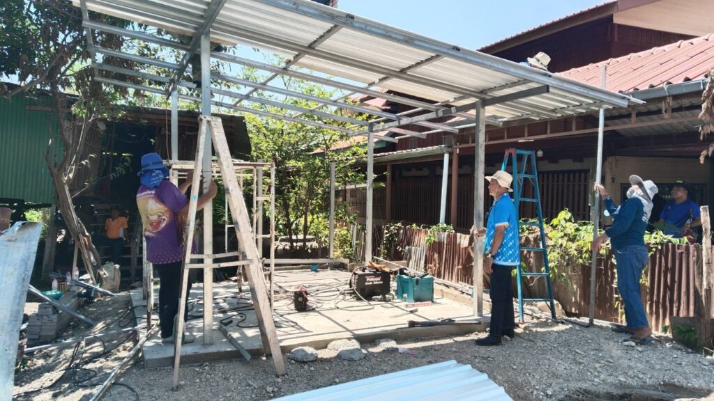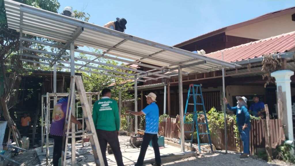 ได้นำทีมงานกองช่างอบต. หนองทรายขาว ลงพื้นที่บ้านของ “นางเสถียร หลอดทอง บ้านเลขที่ 29 หมู่ที่ 1 บ้านมะขามเฒ่า ต.หนองทรายขาว” ดำเนินการซ่อมแซมบ้านพักอาศัยผู้ที่มีรายได้น้อยประจำปี 2568 บ้านพอเพียง จังหวัดลพบุรี “โครงการสวัสดิการชุมชนจังหวัดลพบุรี ” สภาชุมชนตำบลหนองทรายขาว ทำโครงสร้างพร้อมขึ้นหลังคา แล้วติดตั้งหน้าต่าง