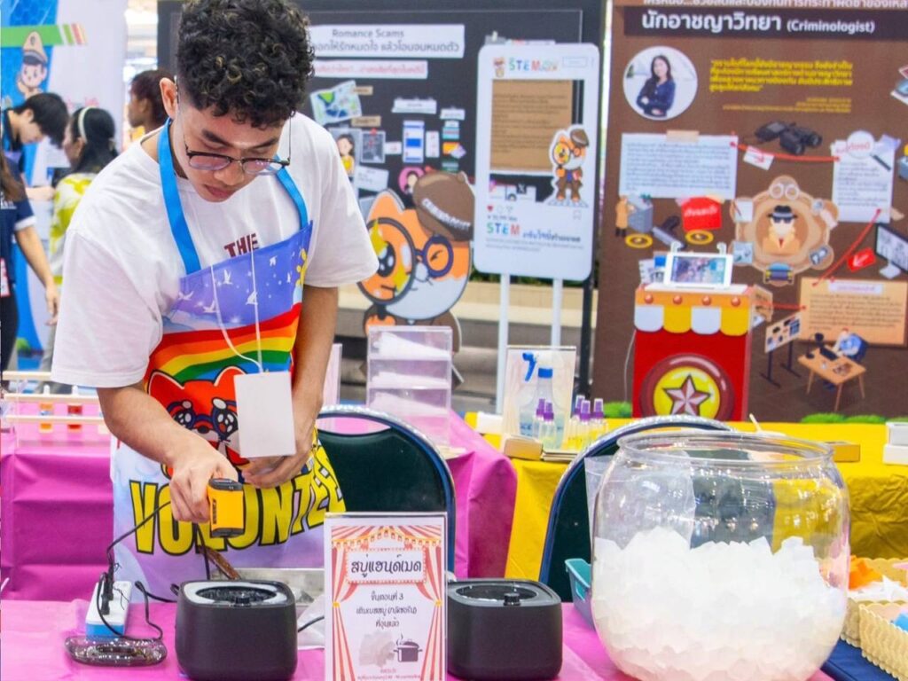 ภายใต้คอนเซ็ปต์ “ยกขบวนความสนุก ปลุกจินตนาการนักวิทย์ตัวน้อย” งานนี้จัดเต็มด้วยกิจกรรมเสริมทักษะ สนุกสนานพร้อมเรียนรู้ไปกับหลากหลายอาชีพในฝัน โดยได้รับความร่วมมือจาก องค์การพิพิธภัณฑ์วิทยาศาสตร์แห่งชาติ (อพวช.) ที่ขนกิจกรรมแน่นๆ มาสร้างประสบการณ์การเรียนรู้ด้านวิทยาศาสตร์ เทคโนโลยี และนวัตกรรม ให้น้องๆ ได้ลงมือทำจริง