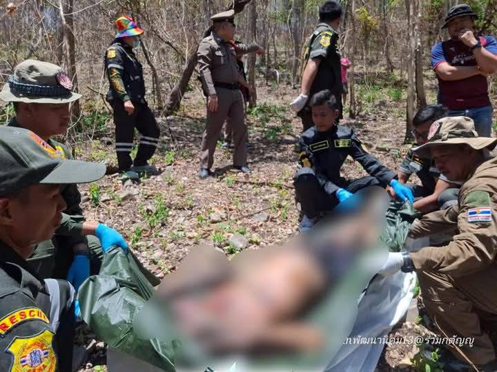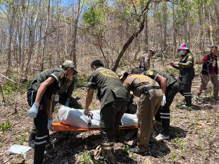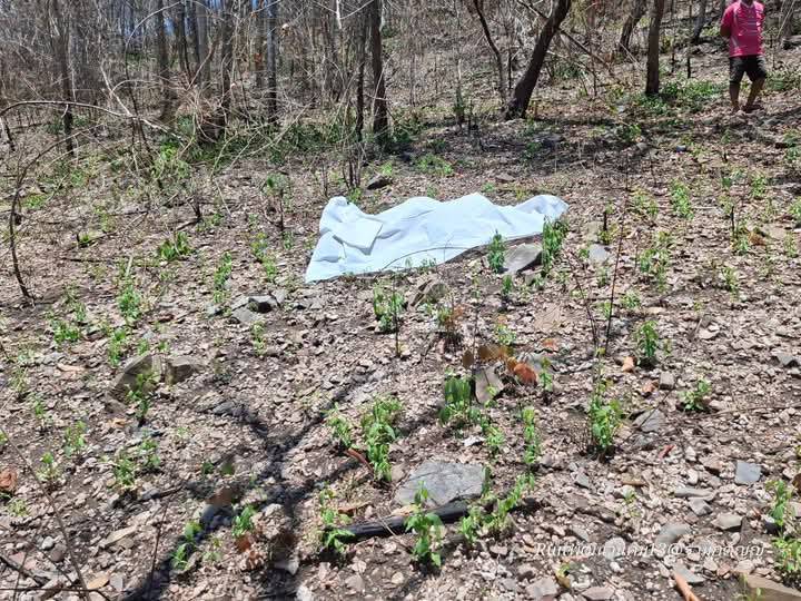 พบร่างผู้เสียชีวิตนอนอยู่ในสภาพนอนคว่ำหน้าอยู่บนภูเขา ไม่สวมใส่เสื้อ ใส่กางเกงขาสั้นสีดำ เสียชีวิตประมาณ2วัน