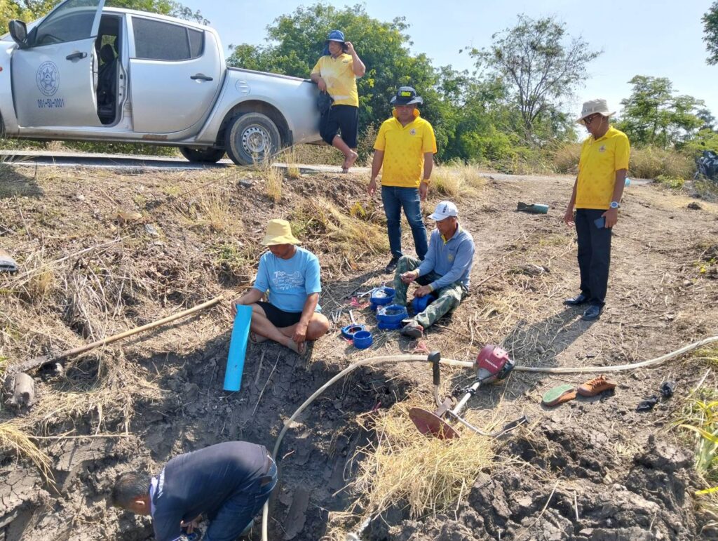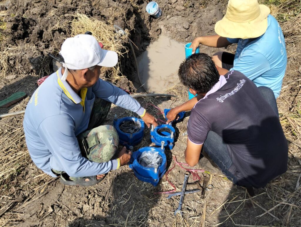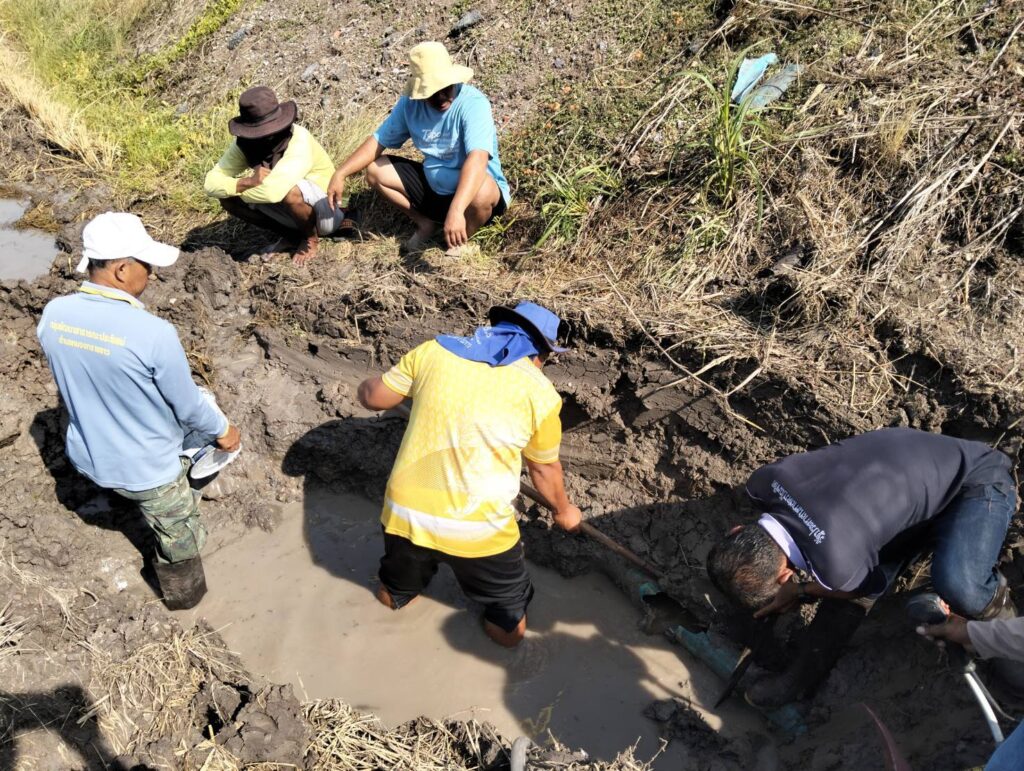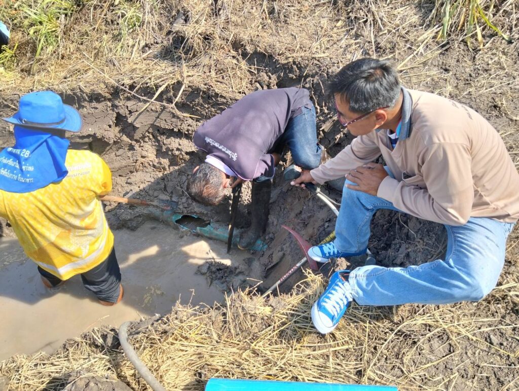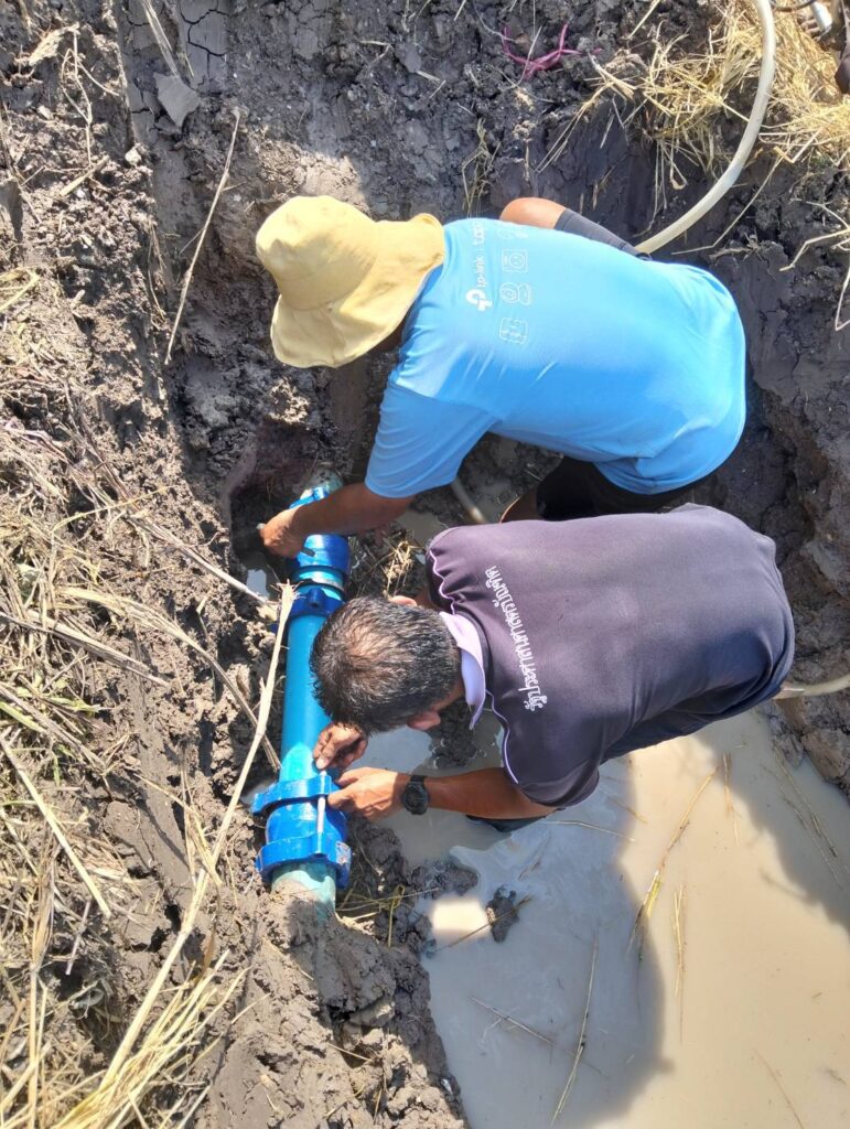 พร้อมด้วยทีมงานกองช่าง อบต. หนองทรายขาว ลงพื้นที่ด่วนเพื่อทำการซ่อมแซมท่อส่งน้ำประปาของ อบต. หนองทรายขาว “ที่ชำรุดเสียหาย” ซึ่งเป็นท่อส่งน้ำไปยังหมู่ที่ 3 บ้านสระเตยน้อย, หมู่ที่ 4 บ้านสระเตย,ใหญ่ หมู่ที่ 6บ้านเนินยาว, และหมู่ที่ 7 บ้านคลอง ต.หนองทรายขาว ได้ทำการซ่อมแซมเสร็จเป็นที่เรียบร้อยแล้วสามารถใช้งานได้ตามปกติ