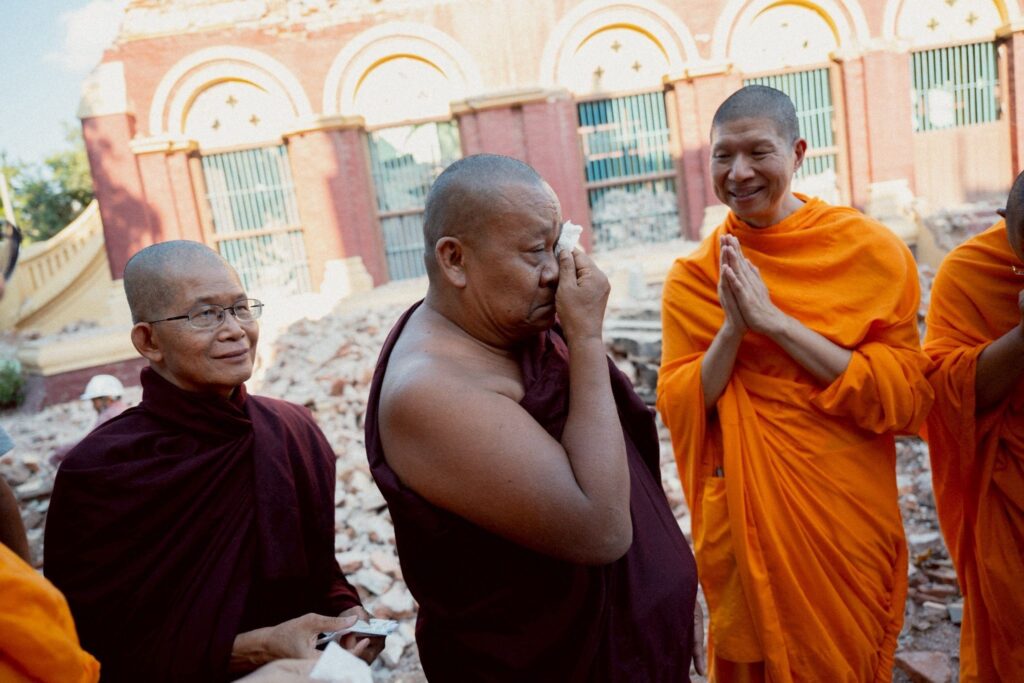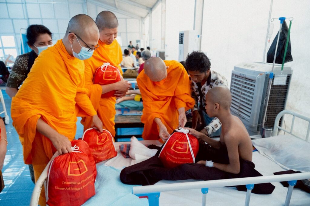 โดยคณะสงฆ์และศิษยานุศิษย์วัดพระธรรมกาย เดินทางไปยังเมืองมัณฑะเลย์ สาธารณรัฐแห่งสหภาพเมียนมา ระหว่างวันที่ 15 – 18 เมษายน 2568 ได้มอบสังฆทานช่วยเหลือวัดที่ได้รับความเสียหายถึง 181 แห่ง และมอบถุงมือการแพทย์จำนวน 1 หมื่นคู่ อุปกรณ์ทำแผล 2 ลัง ยาแก้ปวดกล้ามเนื้อ 3 ลัง ยาแก้อักเสบ 1 ลัง ยาแก้ปวด 1 ลัง แก่ผู้อำนวยการโรงพยาบาลมัณฑะเลย์ เจนเนอรัล และเข้าเยี่ยมให้กำลังใจผู้ป่วยที่รอดชีวิตจากเหตุการณ์แผ่นดินไหวพร้อมทั้งมอบถุงยังชีพและทุนทรัพย์ช่วยเหลือเบื้องต้นซึ่งมีทั้งพระภิกษุสามเณรและประชาชนเป็นจำนวนมากเกินพื้นที่รองรับภายอาคาร จำเป็นต้องเพิ่มเต๊นท์ชั่วคราวเพื่อดูแลผู้ป่วยโดยรอบโรงพยาบาล