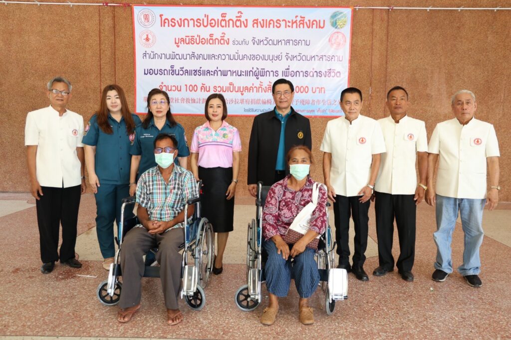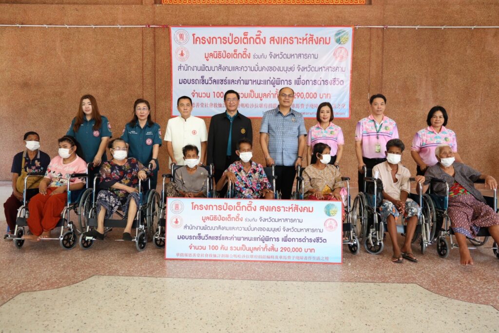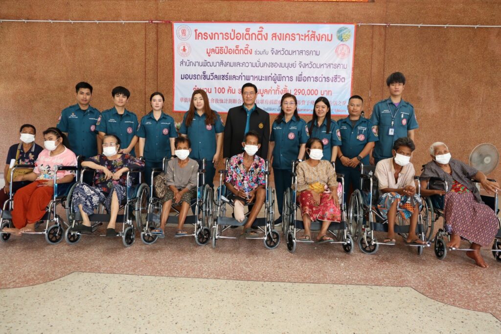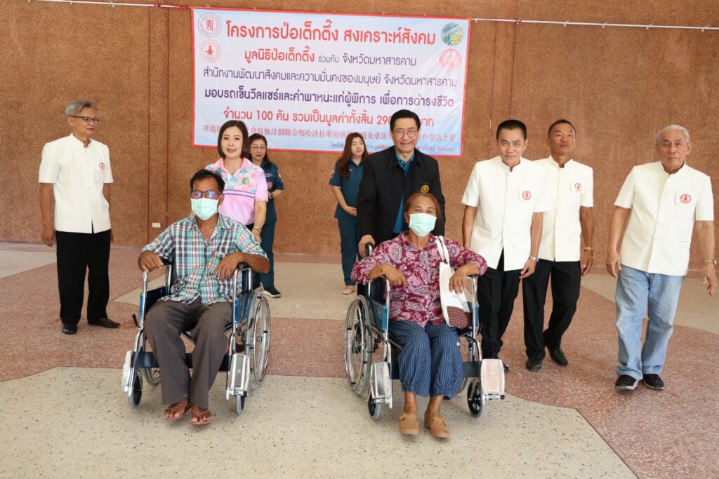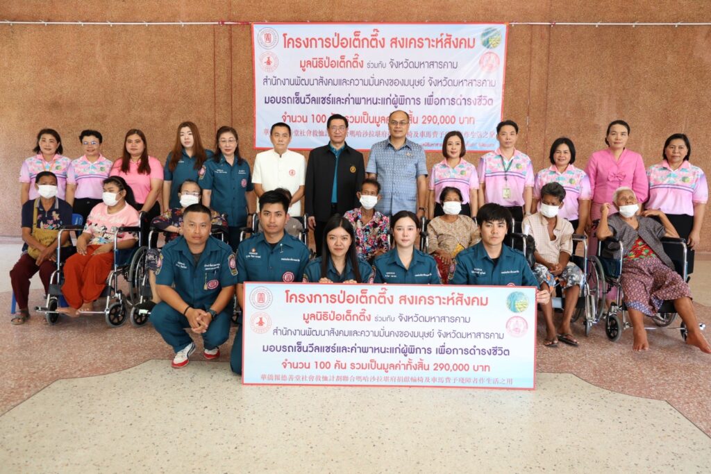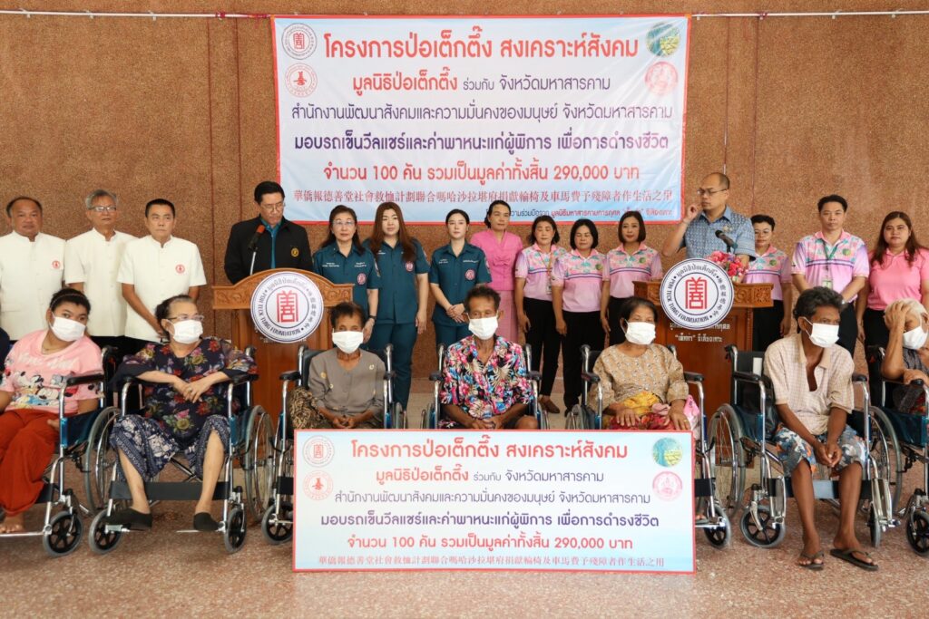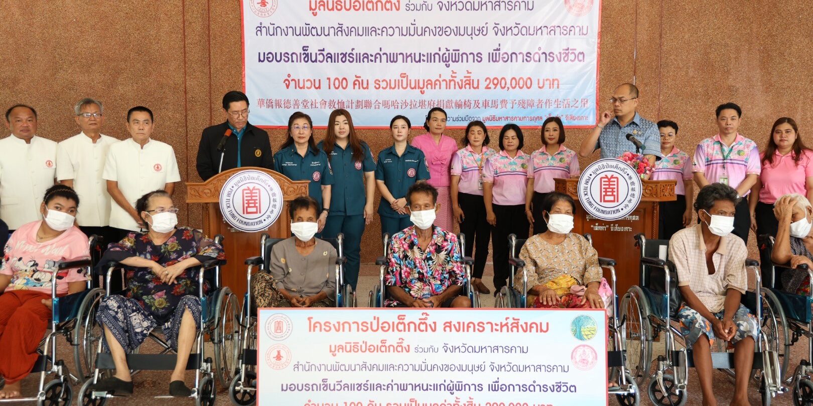 วันนี้ (วันอังคารที่ 22 เมษายน พ.ศ. 2568) มูลนิธิป่อเต็กตึ๊ง นำโดย นายสุรพงศ์ เสรฐภักดี กรรมการและรองเหรัญญิก พร้อมด้วย นางสาวดวงชุตา ติยะพจนพรกุล ผู้ช่วยผู้จัดการฝ่ายสังคมสงเคราะห์ และนางสาวศุภรัตน์ สมบัติเจริญไทย หัวหน้าแผนกส่งเสริมการศึกษาและอาชีพ นำทีมลงพื้นที่มอบรถเข็นวีลแชร์ให้แก่ผู้พิการด้อยโอกาสในพื้นที่จังหวัดมหาสารคาม รวม 100 คันพร้อมค่าพาหนะ คนละ 500 บาท ในโครงการ ป่อเต็กตึ๊ง สงเคราะห์สังคม รวมมูลค่าทั้งสิ้น 290,000 บาท (สองแสนเก้าหมื่นบาทถ้วน) เพื่อบรรเทาความยากลำบากในการดำรงชีวิตและเพื่อให้มีความสามารถในการช่วยเหลือตนเองได้ โดยมี นายกองเอก เสนีย์ มะโน รองผู้ว่าราชการจังหวัดมหาสารคาม เป็นประธานในพิธี พร้อมด้วย นางสาวชลลดา ชนะศรีรัตนกุล พัฒนาสังคมและความมั่นคงของมนุษย์จังหวัดมหาสารคาม ร่วมในพิธี และคณะมูลนิธิมหาสารคามการกุศล “เต็กก่า” จีเสียงเกาะ เป็นผู้ประสานงานและร่วมในพิธี ณ มูลนิธิมหาสารคามการกุศล “เต็กก่า” จีเสียงเกาะ อำเภอเมือง จังหวัดมหาสารคาม