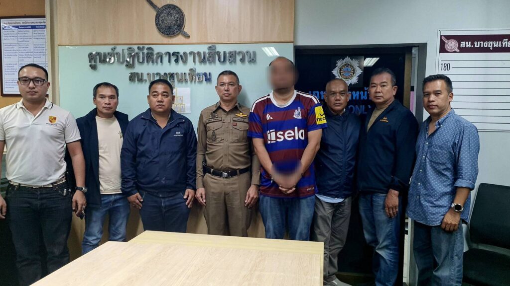 เมื่อเวลา 14.00 น. วันที่ 22 เม.ย.ที่ห้องฝ่ายสืบสวน สน.บางขุนเทียน พล.ต.ต.คมสิทธ์ รังไสย์ ผบก.น.9 และ พ.ต.อ.ธีระชัย เด็ดขาด รอง ผบก.น.9 สั่งการให้ พ.ต.อ.กฤติเดช จันทร์เพชร ผกก.สน.บางขุนเทียน พ.ต.ท.ขจร ธูปประกายศรี สว.สส.สน.บางขุนเทียน และพ.ต.ต.สังคม หาญณรงค์ สว.สส. นำกำลังฝ่ายสืบสวน สน.บางขุนเทียน จับกุมนายชนะศึก หรือจุ๊บ ทิพย์สุนา อายุ 43 ปี ผู้ต้องหาตามหมายจับศาลอาญาธนบุรี ที่ 317/ 2568 ลงวันที่ 21 มี.ค. 68 ข้อหา ” ร่วมกันฉ้อโกงโดยแสดงตนเป็นคนอื่น ” จับกุมได้ที่บริเวณ กม.52 ถนนพหลโยธิน (ขาเข้า) ต.เชียงรากน้อย อ.บางปะอิน จ.พระนครศรีอยุธยา