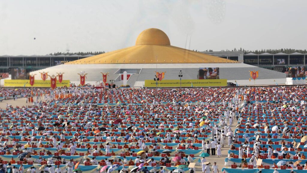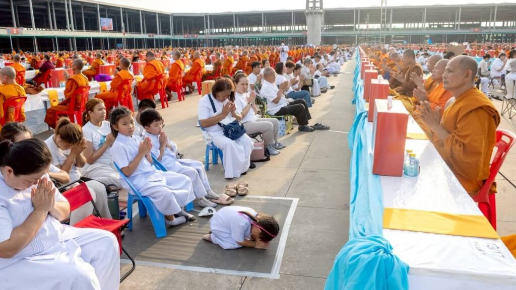 เมื่อเวลา 17.00 น. วันที่ 22 เมษายน 2568 ที่วัดพระธรรมกาย ต.คลองสาม อ.คลองหลวง จ.ปทุมธานี พุทธศาสนิกชนร่วมพิธีถวายมหาสังฆทาน 40,000 วัด แด่พระมหาเถรานุเถระ และพระสังฆาธิการทั่วประเทศ ปลุกพลังแห่งการ “ให้” ที่แท้จริงให้กลับคืนสู่สังคมไทย ในแก่นแท้ของการถวายสังฆทานนั้น คือ “ธรรมะแห่งทาน” การสละสิ่งของเพื่อประโยชน์ส่วนรวม ฝึกให้ใจละวางความยึดติด สร้างเมตตา กรุณา และเติมเต็มศรัทธาในพระพุทธศาสนาให้มั่นคงยิ่งขึ้น