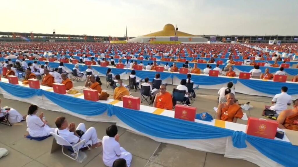 ภายในพิธีได้รับความเมตตาจาก เจ้าประคุณสมเด็จพระมหาธีราจารย์ กรรมการมหาเถรสมาคม เจ้าคณะใหญ่หนเหนือ เจ้าอาวาสวัดพระเชตุพนวิมลมังคลารามราชวรมหาวิหาร ประธานคณะกรรมการฝ่ายสาธารณสงเคราะห์ของมหาเถรสมาคม ประธานคณะกรรมการอบรมประชาชนกลาง กรรมการสภามหาวิทยาลัยผู้ทรงคุณวุฒิ มหาวิทยาลัยจุฬาลงกรณ์ราชวิทยาลัย วิทยาเขตอุบลราชธานี เป็นประธานสงฆ์ นายองครักษ์ ทองนิรมล รองผู้ว่าราชการจังหวัดปทุมธานี ผู้แทนผู้ว่าราชการจังหวัดปทุมธานี เป็นประธานฝ่ายฆราวาส พิธีสวดเจริญพุทธมนต์ และพิธีถวายมหาสังฆทานแด่คณะสงฆ์ 40,000 กว่าวัดทั่วประเทศ ณ วัดพระธรรมกาย จ.ปทุมธานี โดยได้รับความเมตาจากพระมหาเถรานุเถระและพระสังฆาธิการทั่วประเทศมาร่วมกิจกรรม