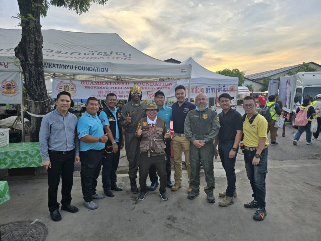 บรรยากาศ การช่วยเหลือและสนับสนุนเป็นไปอย่างอบอุ่นระหว่าง สมาคมศิษย์เก่านักศึกษาวิชาทหาร กับมูลนิธิร่วมกตัญญูและเหล่าศิลปินดารานักแสดง