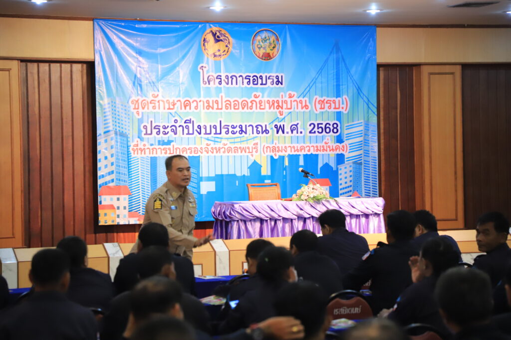การอบรมชุดรักษาความปลอดภัยหมู่บ้าน (ชรบ.) ในครั้งนี้เพื่อเพิ่มศักยภาพ ขีดความสามารถให้กับชุดรักษาความปลอดภัยหมู่บ้าน (ชรบ.) ในการปฏิบัติหน้าที่ เสริมสร้างความมั่นคงในพื้นที่ ตามแนวทางนโยบายของภาครัฐ และสร้างความมั่นใจในการปฏิบัติหน้าที่ของชุดรักษาความปลอดภัยหมู่บ้าน (ชรบ.) ในพื้นที่จังหวัดลพบุรีต่อไป โดยการฝึกอบรมในครั้งนี้ มีกำหนดจัดขึ้น ระหว่างวันที่ 23 – 25 เมษายน 2568 รวม 3 วัน ซึ่งผู้เข้ารับการอบรมจะได้เรียนรู้ เกี่ยวกับ แนวทางการเสริมสร้างหมู่บ้าน ชุมชนเข้มแข็งเอาชนะยาเสพติด การรักษาความปลอดภัยหมู่บ้าน อำนาจในการจับกุมและการค้น ของพนักงานฝ่ายปกครอง การผลิตสื่อและประชาสัมพันธ์บทบาทภารกิจ ชรบ. การฝึกยุทธวิธี การรักษาความปลอดภัยสถานที่ โครงการข่ายและการติดต่อสื่อสาร การปฐมพยาบาลเบื้องต้น และ หลักความปลอดภัยเบื้องต้นในการใช้อาวุธ เป็นต้น
