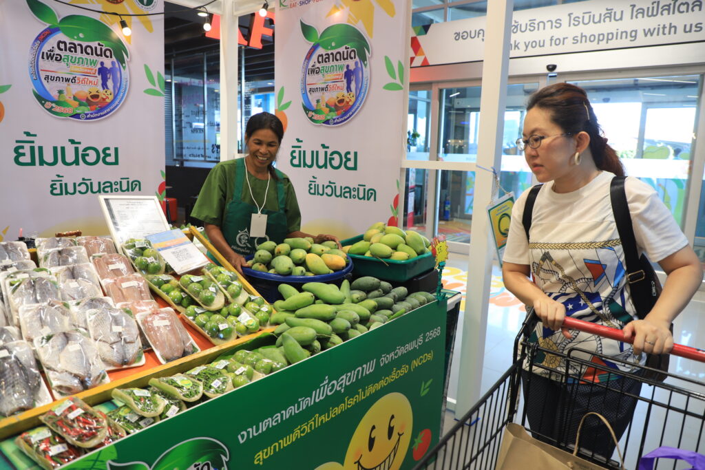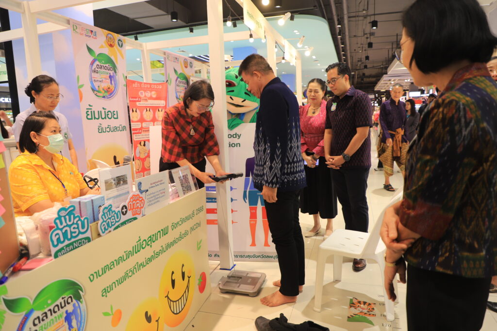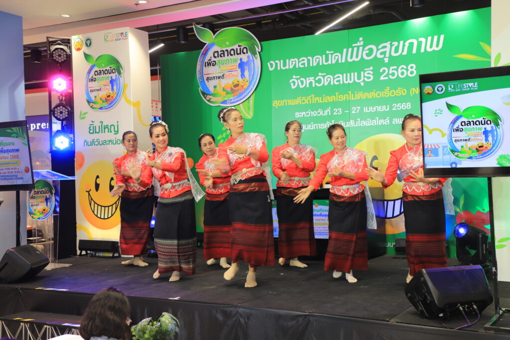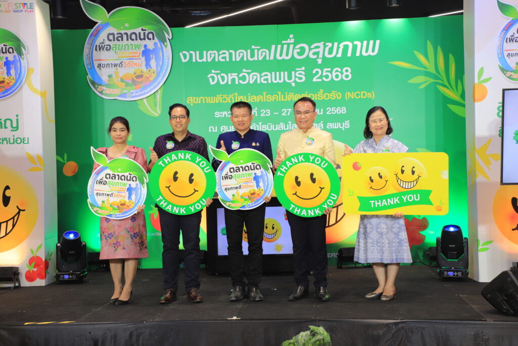 วันที่ 23 เมษายน 2568 เวลา 15.00 น. ที่ ห้างสรรพสินค้า โรบินสัน ไลฟ์สไตล์ ลพบุรี (บริเวณ ชั้น 1 ลานโปรโมชั่น B) ว่าที่ร้อยตรี ทรงพล แป้นแก้ว รองผู้ว่าราชการจังหวัดลพบุรี เป็นประธานเปิดตลาดนัดเพื่อสุขภาพจังหวัดลพบุรี เพื่อส่งเสริมการตลาดสินค้าเกษตรปลอดภัย และการบริโภคอาหารเพื่อสุขภาพ ตลอดจนการคัดกรองสุขภาพภายใต้คอนเซ็ป สุขภาพดีวิถีใหม่ลดโรคไม่ติดต่อเรื้อรัง(NCDs) โดยมี นายแพทย์ปิยะเดช วลีพิทักษ์เดช นายแพทย์สาธารณสุขจังหวัดลพบุรี นางสวามินี อิสระทะ ประชาสัมพันธ์จังหวัดลพบุรี พร้อมด้วย ผู้บริหารศูนย์การค้าโรบินสันไลฟ์สไตล์ ลพบุรี ส่วนราชการ เจ้าหน้าที่ ตลอดจนประชาชนที่สนใจเข้าร่วมกิจกรรมทั้งนี้เพื่อพัฒนาเครือข่ายการดำเนินงานด้านการสื่อสารความรอบรู้ด้านสุขภาพ ตลอดจนประชาชนกลุ่มเป้าหมายมีทักษะความรอบรู้ด้านสุขภาพนำไปสู่การพัฒนา พฤติกรรมสุขภาพ และเพิ่มช่องทางในการจำหน่ายสินค้าเพื่อสุขภาพ ผู้ประกอบการสินค้าเพื่อสุขภาพ มีรายได้เพิ่มขึ้นอีกด้วย