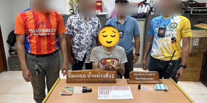 จึงนำตัวพร้อมของกลางส่งพนักงานสอบสวนสภ.บ้านม่วงเพื่อดำเนินตามกฎหมายต่อไป