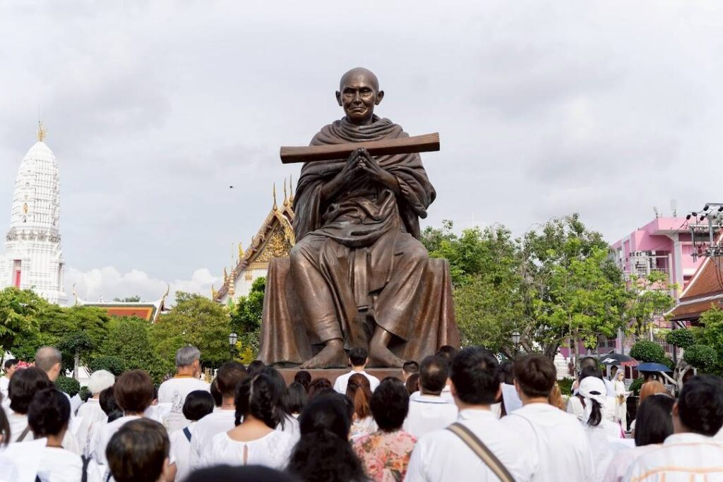 เช้าวันอาทิตย์ท่ามกลางแสงแดดอ่อนๆ ณ ลานสักการะหลวงปู่โต พรหมรังสี ริมฝั่งเจ้าพระยา… ที่ซึ่งแม่น้ำสายประวัติศาสตร์ไหลผ่านเงียบสงบ ศรัทธามหาชนทยอยเดินทางมาถึงวัดระฆังฯ แต่เช้าตรู่ มือถือถุงใส่ของบริจาค – เสื้อผ้าเด็ก หนังสือ และขนมที่คัดสรรมาอย่างตั้งใจ ผู้คนทยอยมากันไม่ขาดสายพร้อมรอยยิ้ม สีขาวของเสื้อผ้าที่ทุกคนสวมใส่สะท้อนแสงแดดระยิบระยับ เหมือนคลื่นแห่งความศรัทธาที่กำลังก่อตัวเป็นพลังมวลใหญ่