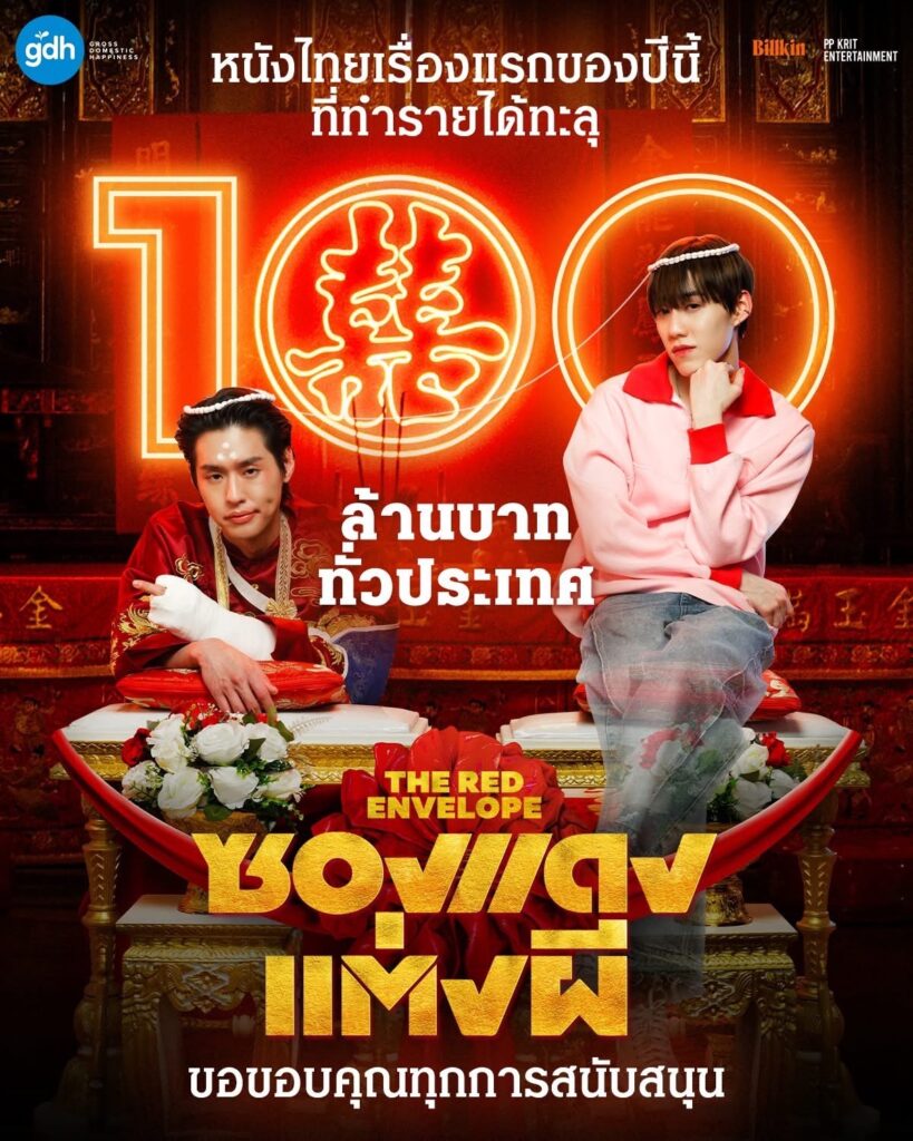 ’ซองแเดงแต่งผี‘ ภาพยนตร์คอมเมดี้เรื่องเยี่ยมจาก GDH ร่วมกับ Billkin Entertainment และ PP Krit Entertainment กลายเป็นหนังไทยเรื่องแรกแห่งปี 2568 ที่ทำรายได้ทั่วประเทศทะลุ 100 ล้านบาทเป็นที่เรียบร้อย